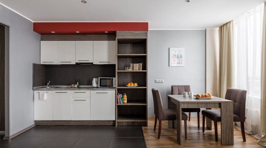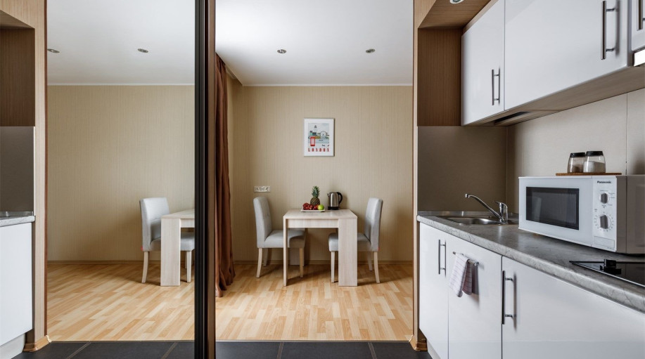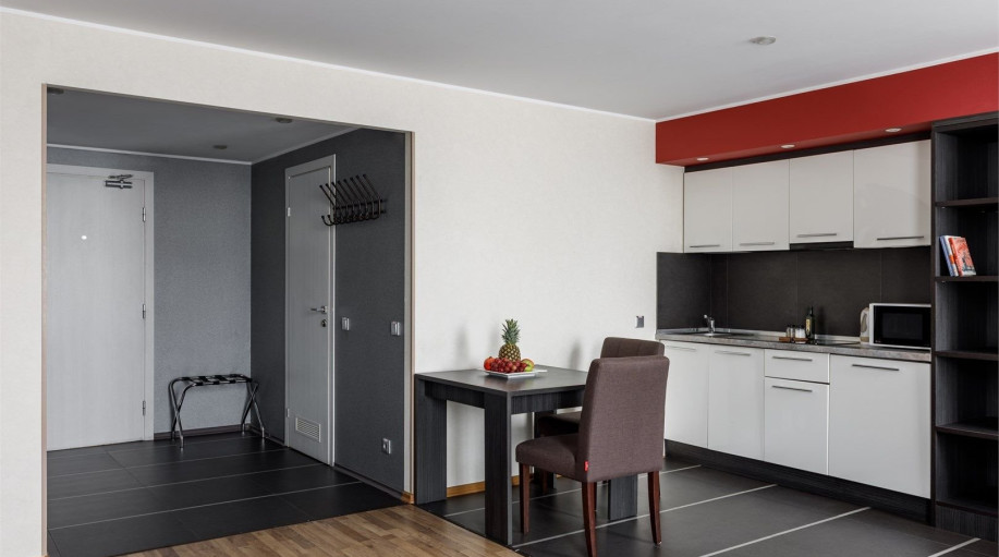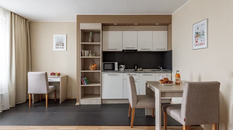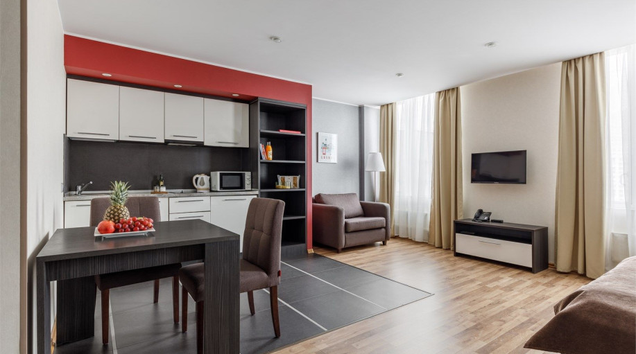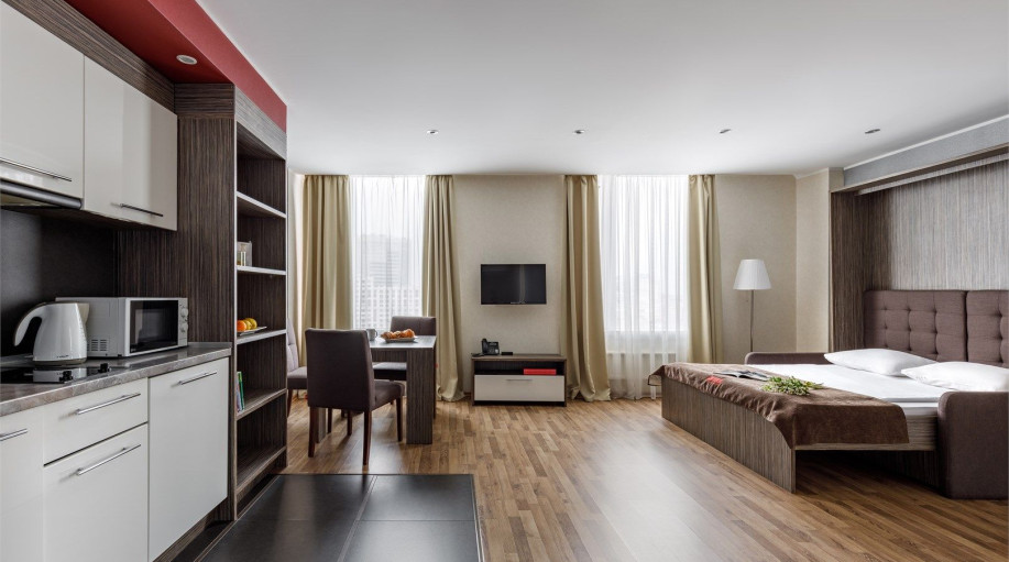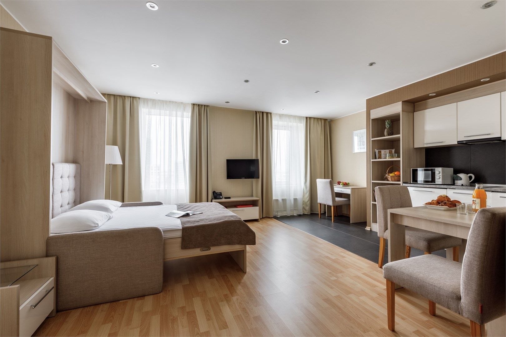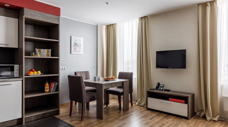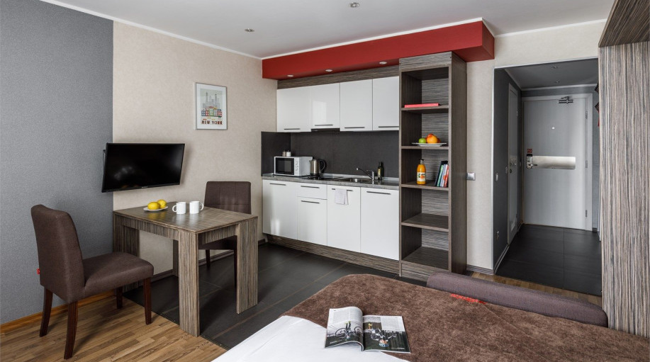 ✔ богатая инфраструктура апарт-отеля (тренажерный зал, прачечная самообслуживания, переговорная комната)