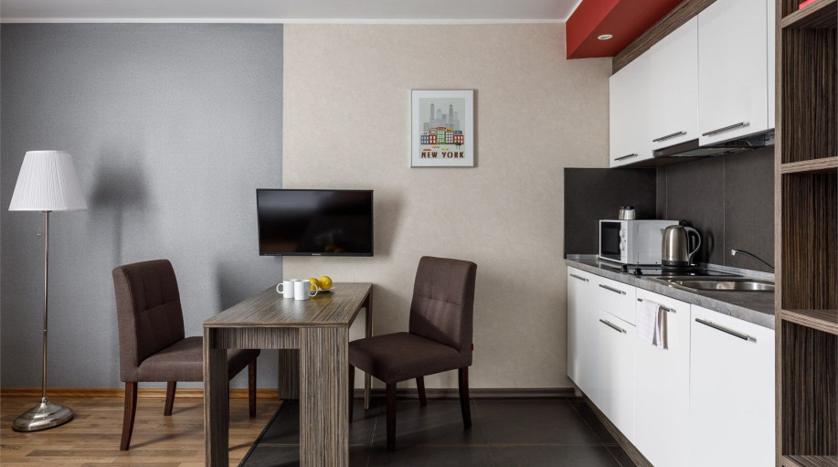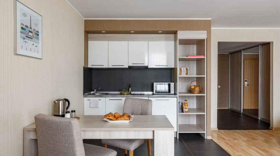 Компактный номер предназначен для комфортного проживания двух человек. Студия располагает всеми удобствами, включая эргономичную кухню, оснащенную необходимой техникой и посудой...