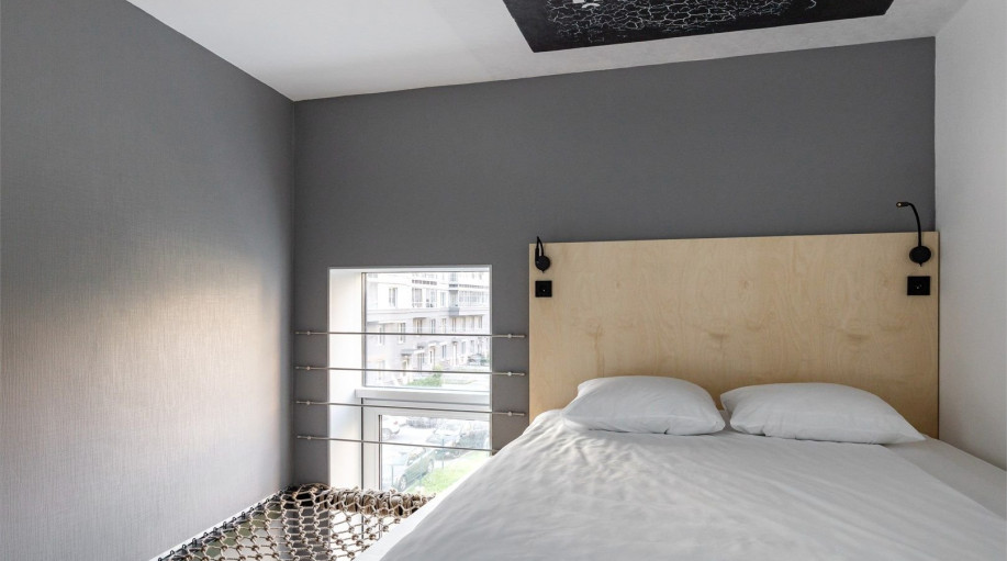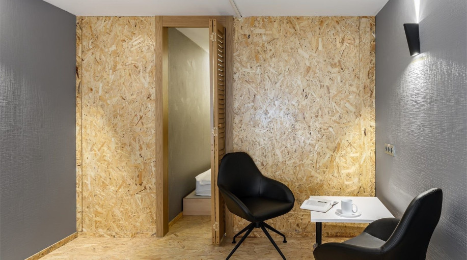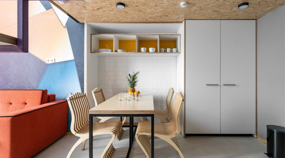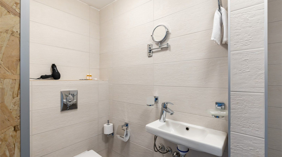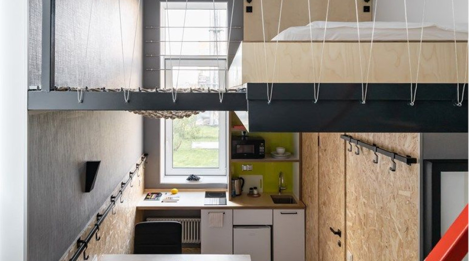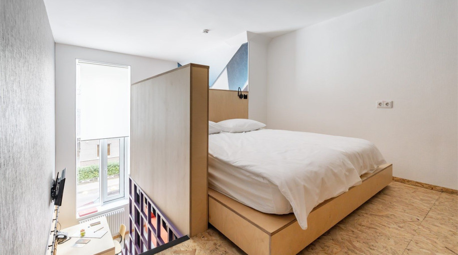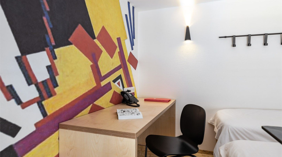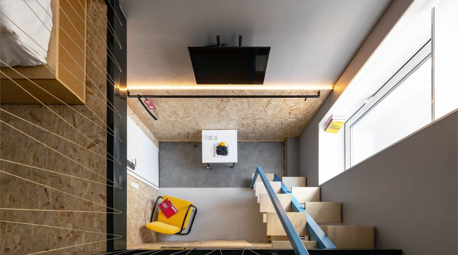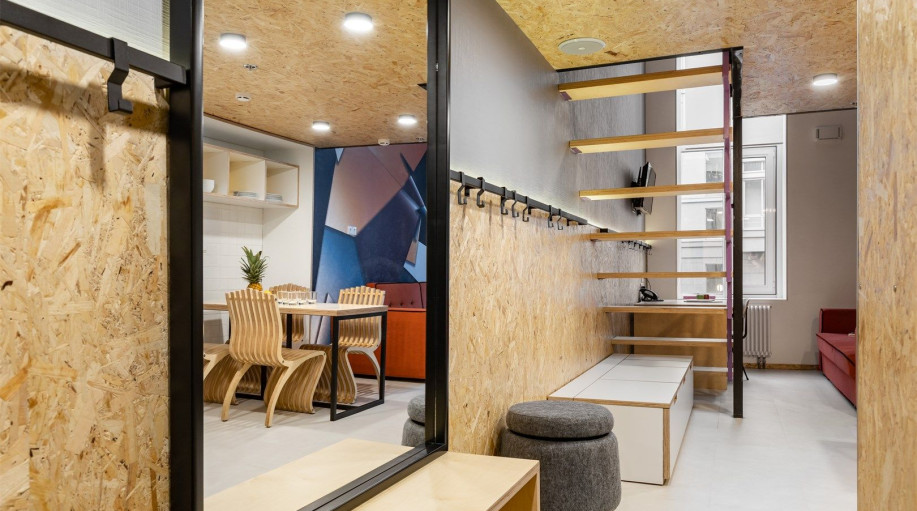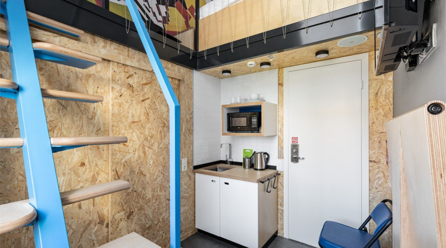 «Экстер» - номер площадью 19,4 м2. На втором этаже расположены две односпальные кровати и рабочие столы. На первом – зона отдыха с телевизором и санузел с душевой кабиной. Номер подойдет для размещения двух гостей...