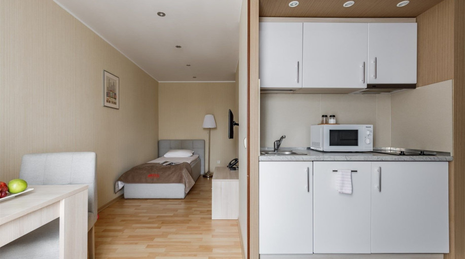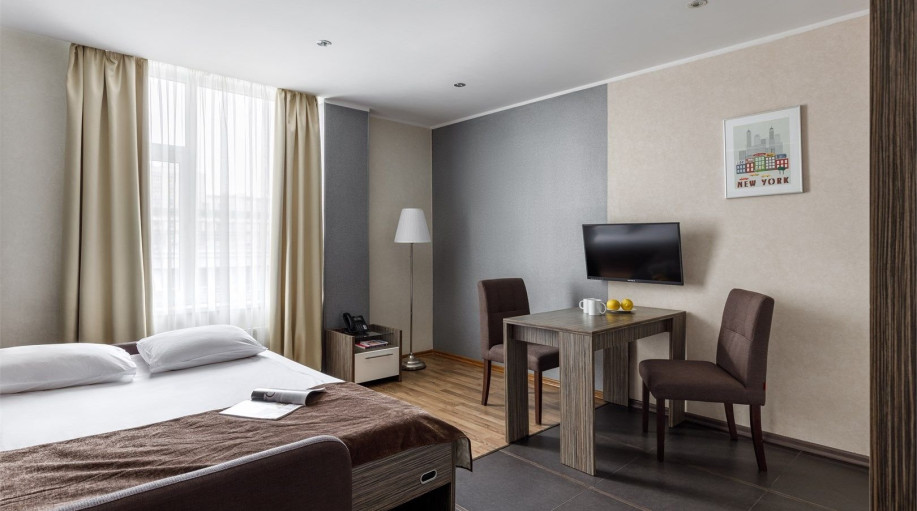 Компактный номер предназначен для проживания одного человека. Располагает всеми удобствами аналогично номеру категории Студия DBL...