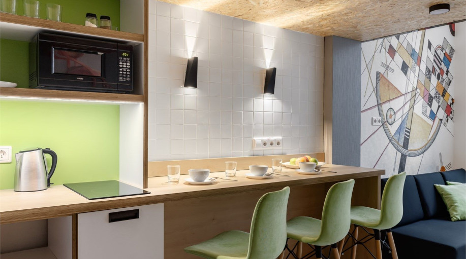В номере "Розанова" комфортно разместится до 2 человек. Две односпальные кровати можно объединить в одну. Удобные рабочая и кухонная зоны с полным оснащением, в ванной комнате душевая кабина. «Розанова» подойдет для краткосрочного размещение одного-двух гостей...