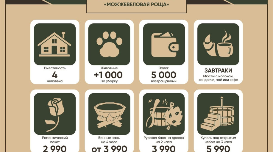 Номерной фонд состоит из 5 домов различных категорий: «Афрейм» и «Барнхаус».
