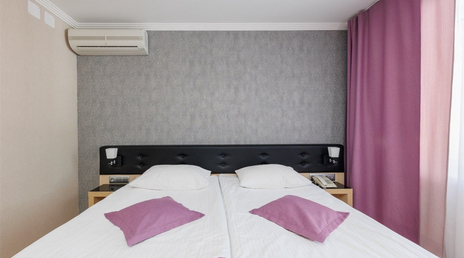 Однокомнатный номер «Стандарт без балкона» в гостинице Атлантика площадью 22 кв.м. Рассчитан на размещение 2 гостей с возможностью предоставления одного дополнительного места. Дети до 2 лет включительно лет размещаются бесплатно: без предоставления отдельного места, детская кроватка по запросу. Гост..