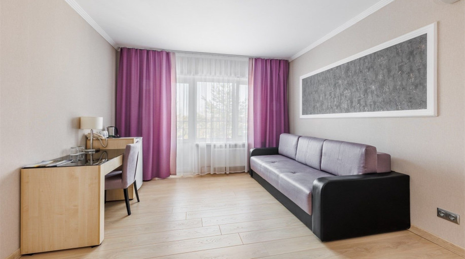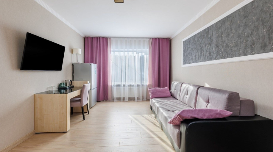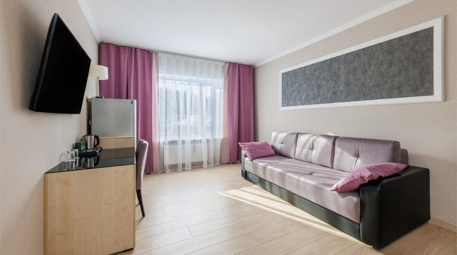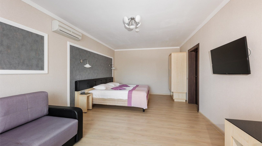 Двухкомнатный номер «Люкс» в гостинице Атлантика площадью от 34 до 44 кв.м. Рассчитан на размещение 2 гостей с возможностью предоставления трех дополнительных мест. Дети до 2 лет включительно лет размещаются бесплатно: без предоставления отдельного места, детская кроватка по запросу. Гостиница «Атла..