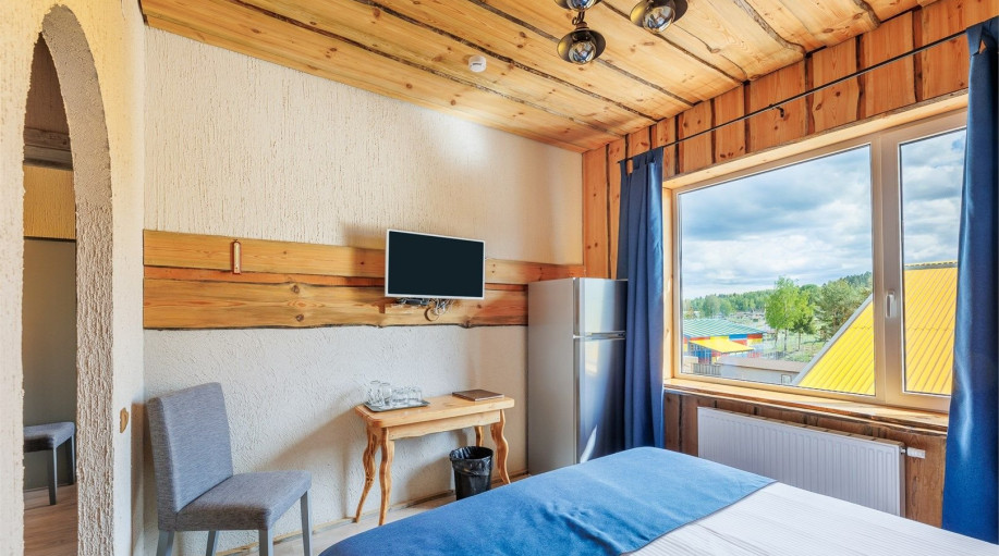 Двухкомнатный номер «Семейный» в Экогостинице площадью 26 кв.м. Рассчитан на размещение 4 гостей. Дети до 2 лет включительно лет размещаются бесплатно: без предоставления отдельного места, детская кроватка по запросу. Экогостиница расположена на территории Карельского Зоопарка - в 700 м от комплекс..