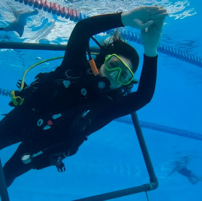 - Практика: 5 занятий в бассейне отрабатываются все ключевые навыки: дыхание под водой, очистка маски, плавучесть, аварийные процедуры.