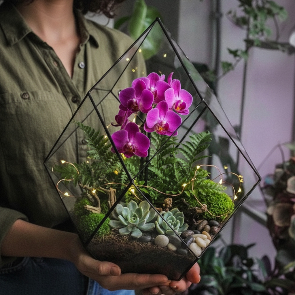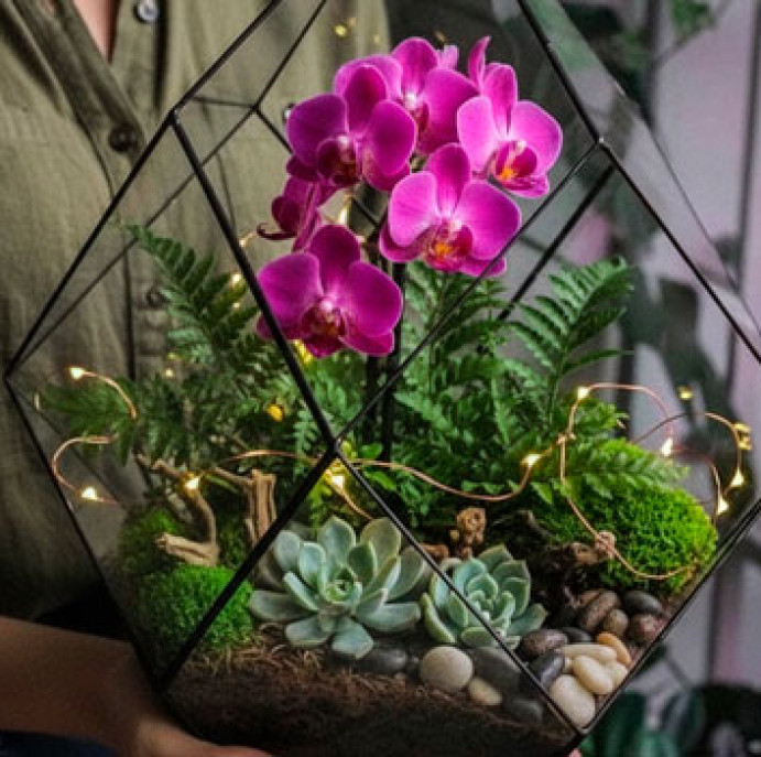 Флорариум с орхидеями — это изысканный и экзотический подарок для ценителей прекрасного. Такой мини-сад под стеклом станет ещё ценнее, если вы создадите его сами, вложив в него свою фантазию и заботу.