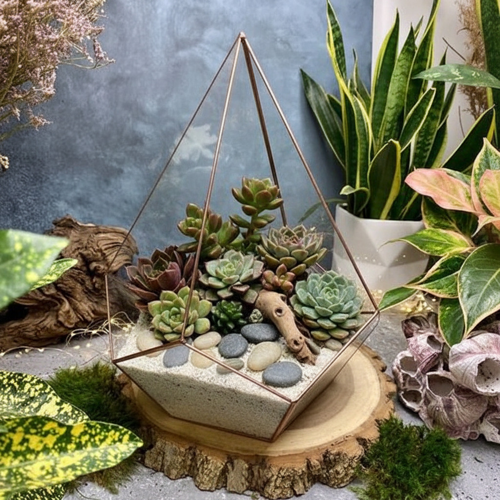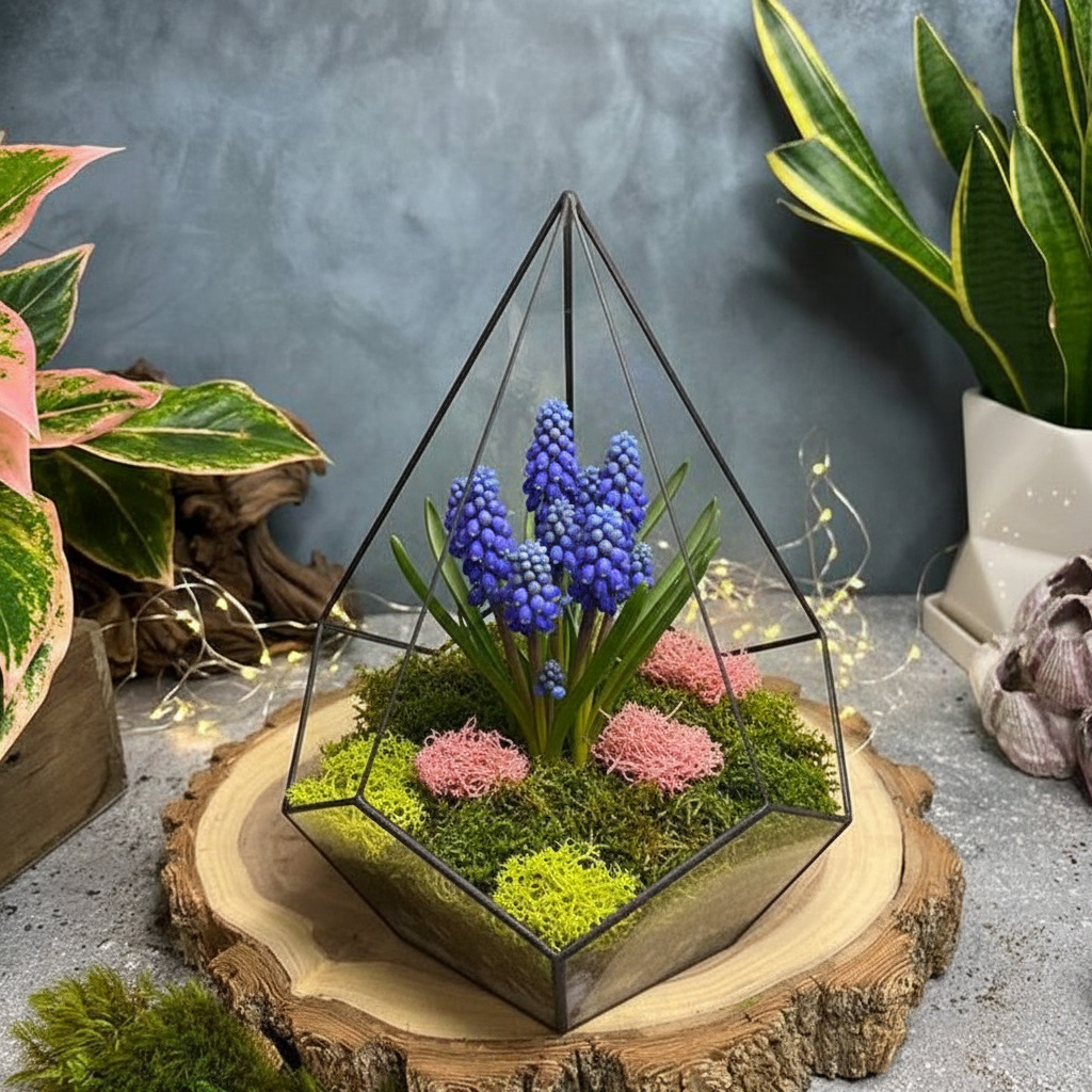- Форма, растения, грунт, мхи, декор, инструменты входят в стоимость