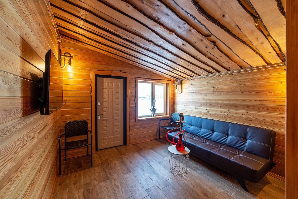 ✔ Русская баня на дровах с каменкой на 200 кг камней и светильниками из гималайской соли