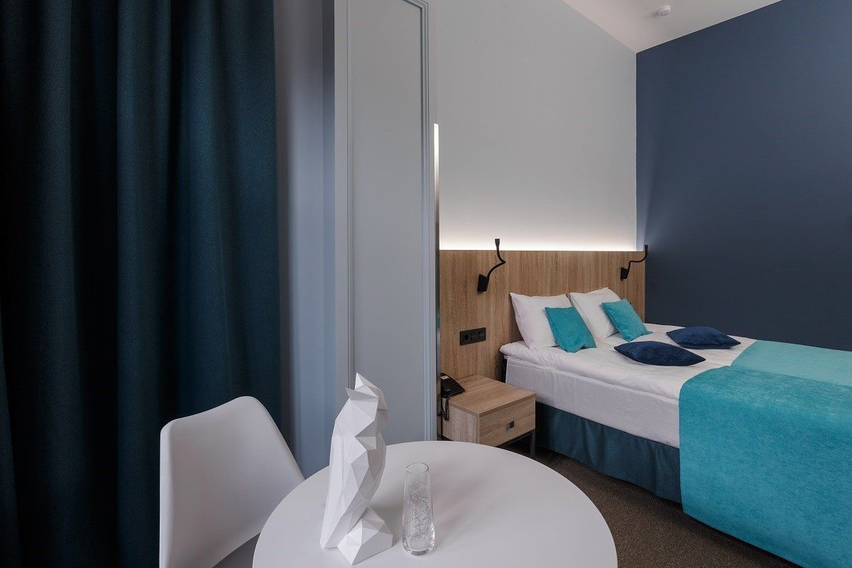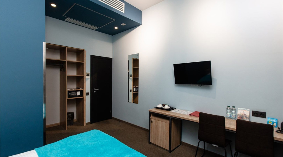 В номере Стандарт отеля Фабрика, площадью 20 кв.м. царит атмосфера уюта и современного стиля. Просторное пространство оптимально использовано для создания комфортной обстановки, в которой гармонично сочетаются функциональность и эстетика. Стены, окрашенные в мягкие пастельные тона, вносят элемент сп..