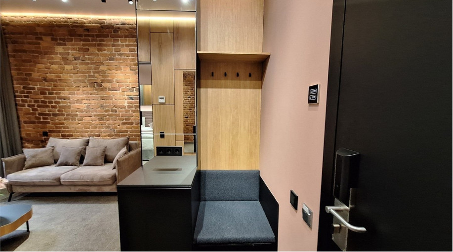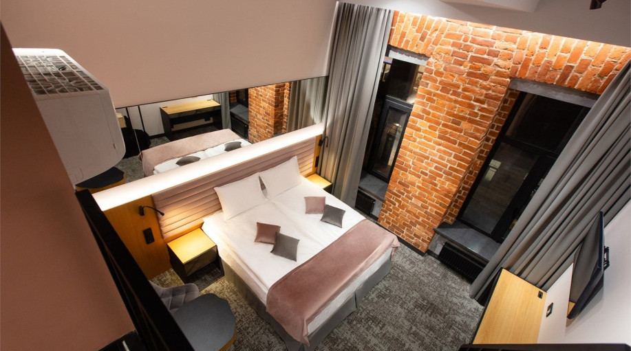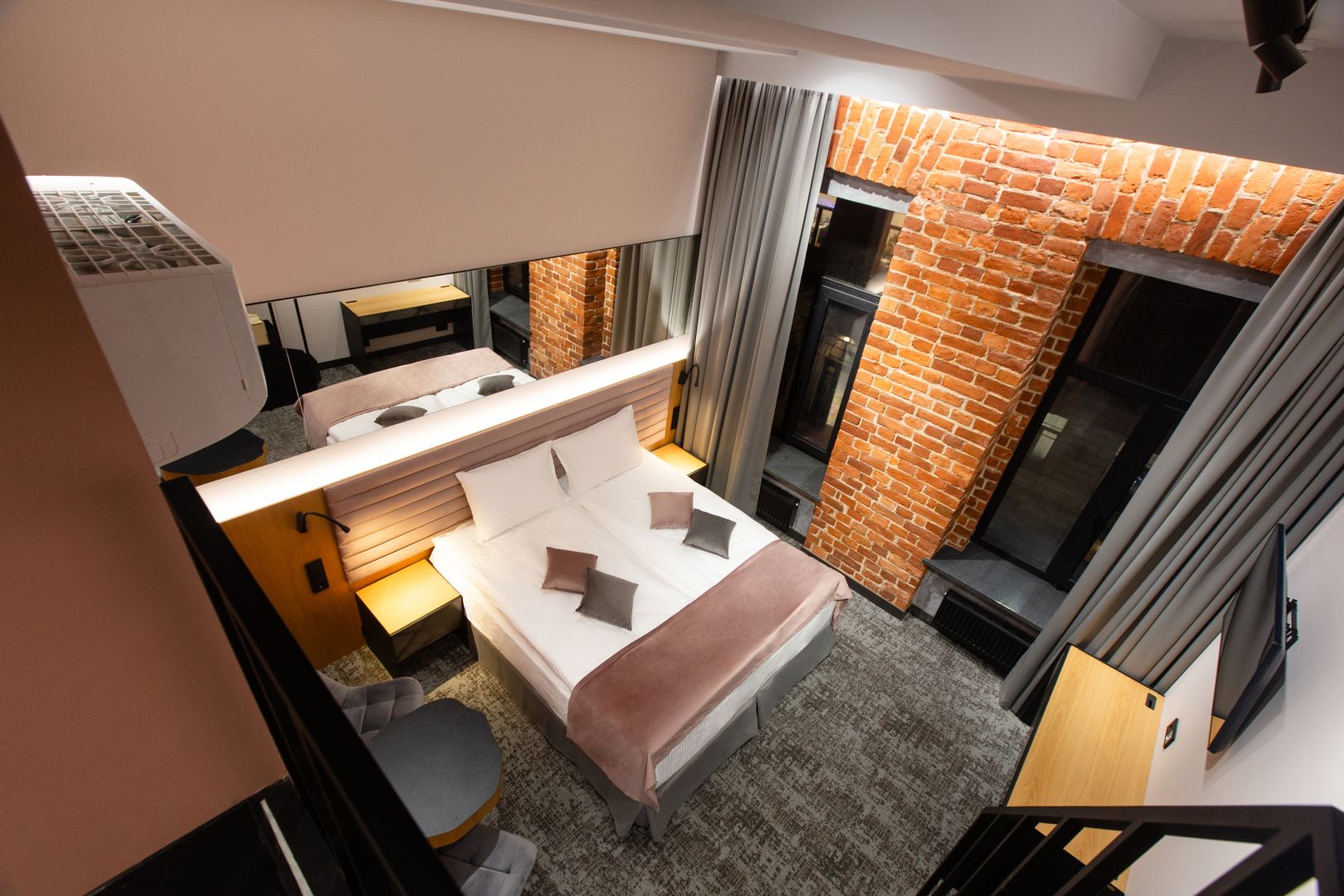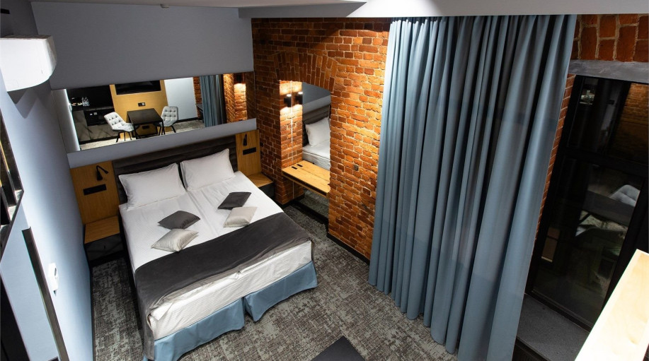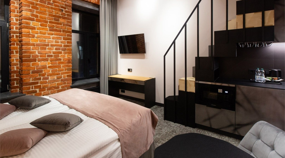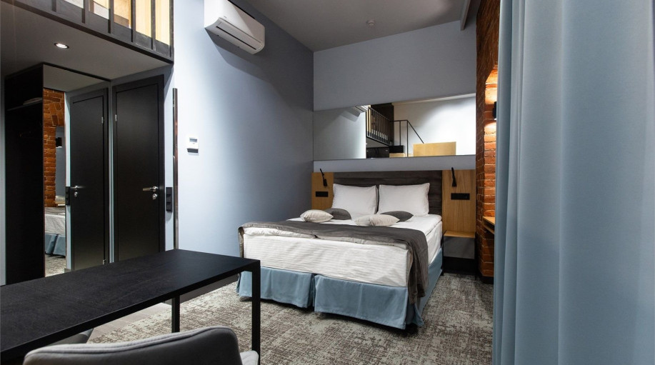 Номер Делюкс в отеле Фабрика – это воплощение современного стиля и комфорта, протянувшееся на просторные 25 квадратных метров. Уютная атмосфера, изысканные детали и уникальный дизайн в стиле лофт создают идеальные условия для отдыха и работы. Высокие потолки, кирпичные стены и большие окна, пропуска..