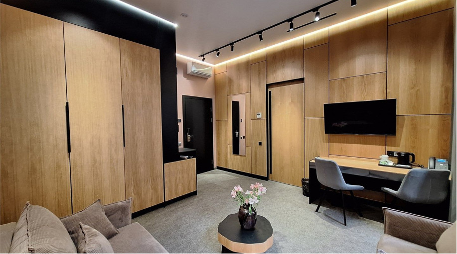 В сердце современного города, где деловая суета встречается с комфортом, находится номер Бизнес-класса в отеле Фабрика. Этот уникальный уголок создан для тех, кто ценит гармонию между работой и отдыхом. Просторный интерьер, оформленный в стиле минимализма, располагает к продуктивной деятельности. Ши..
