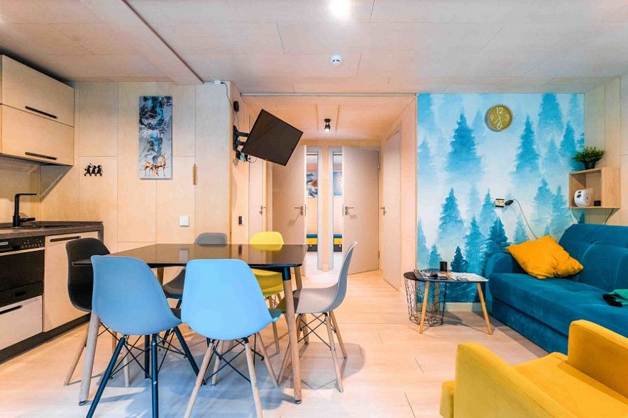 Рассчитан на размещение 4 гостей с возможностью предоставления двух дополнительных мест (на раскладном диване).