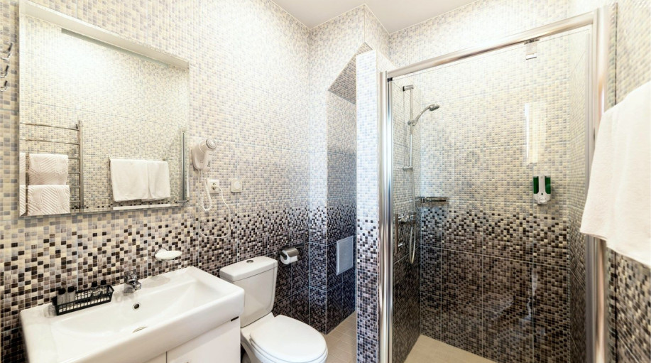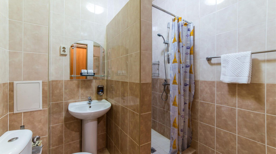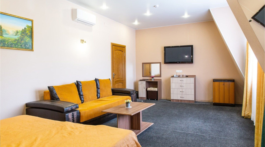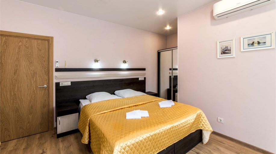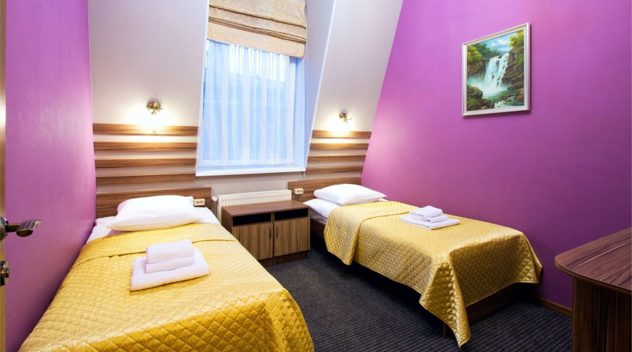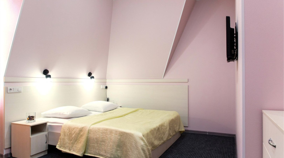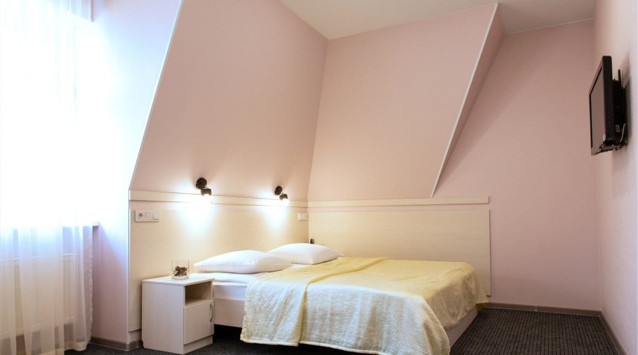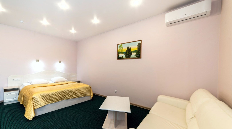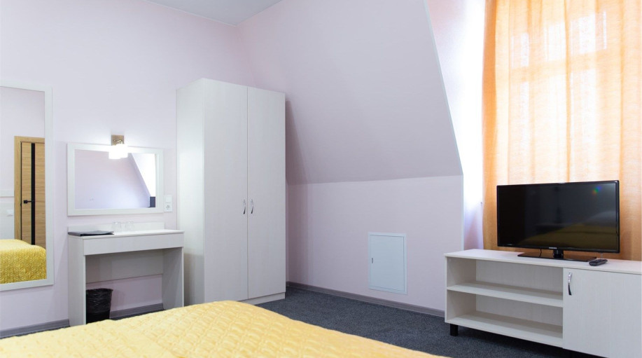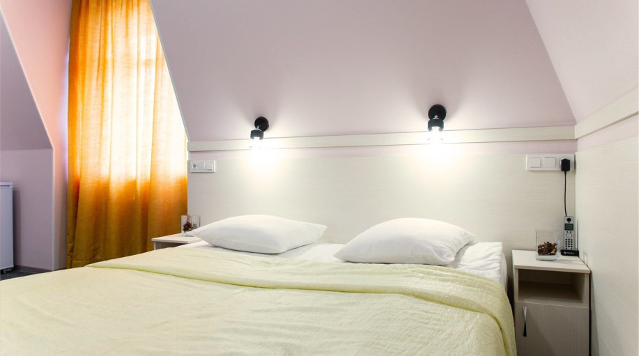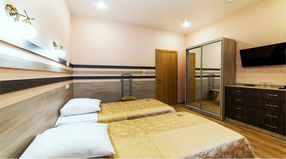 Уютный номер, состоящий из спальной комнаты с двумя раздельными кроватями, которые сдвинуты вместе и объединены общим наматрасником (по желанию могут быть раздвинуты), небольшого холла и совмещенного санузла с угловой ванной. Номер расположен во 2 корпусе и оборудован кондиционером.