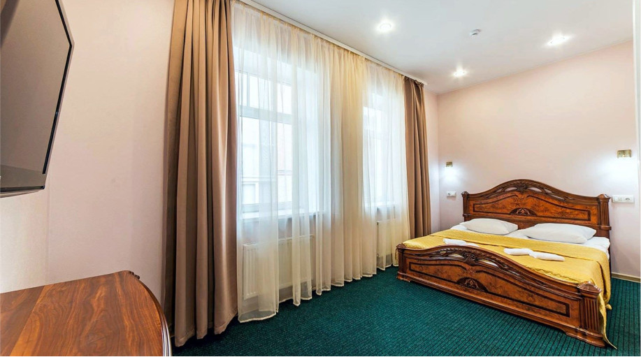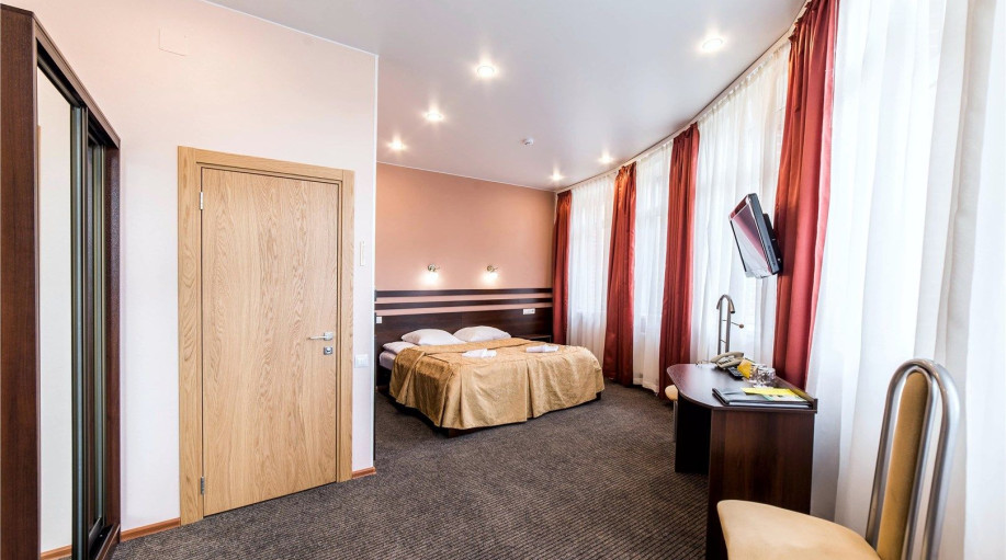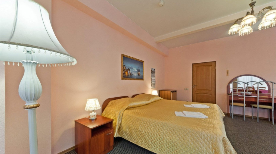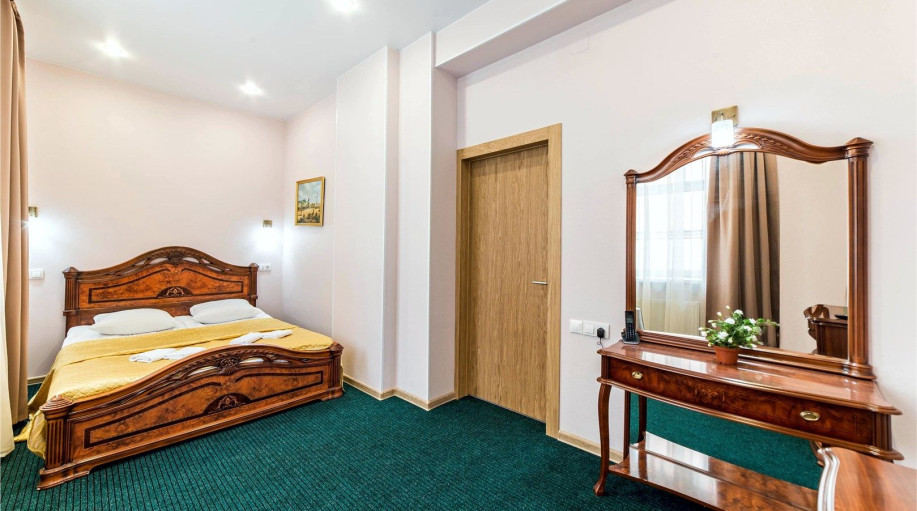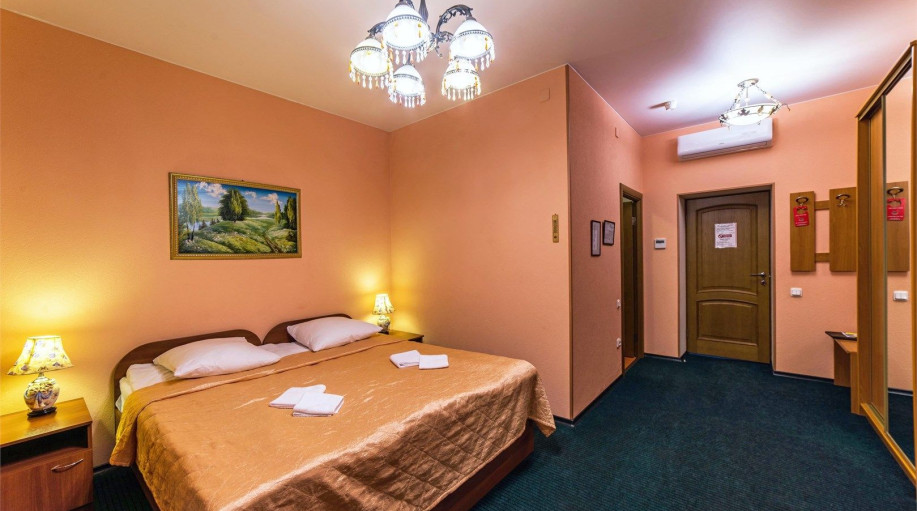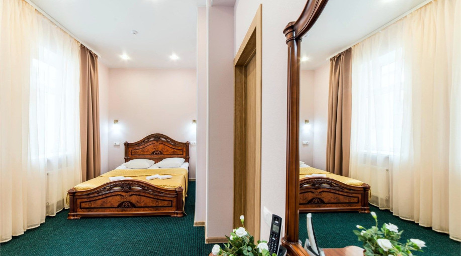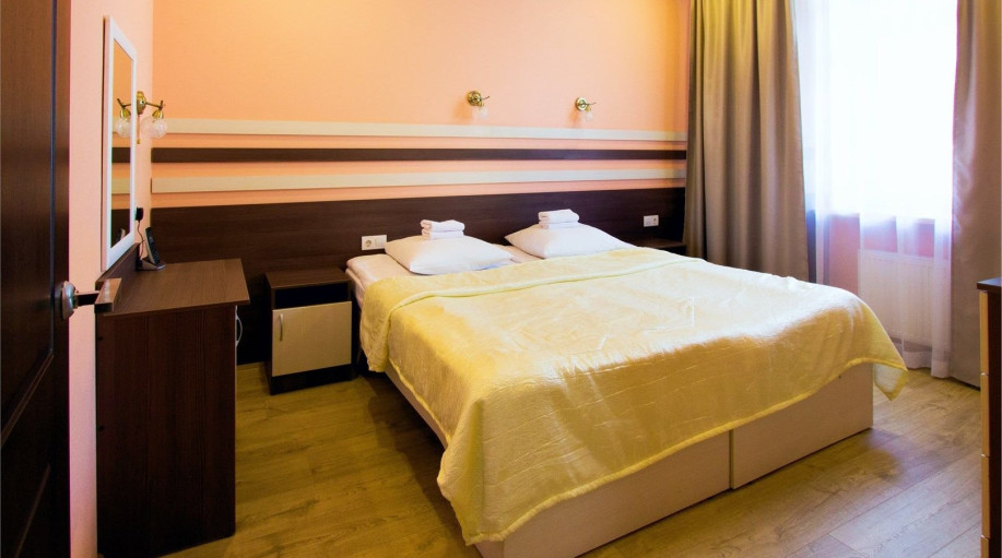 Номера категории "Полулюкс улучшенный" - комфортный двухместный номер, состоящий из спальной комнаты с двумя полуторными кроватями (могут стоять вместе или раздельно) или одной двуспальной, небольшого холла и санузла.