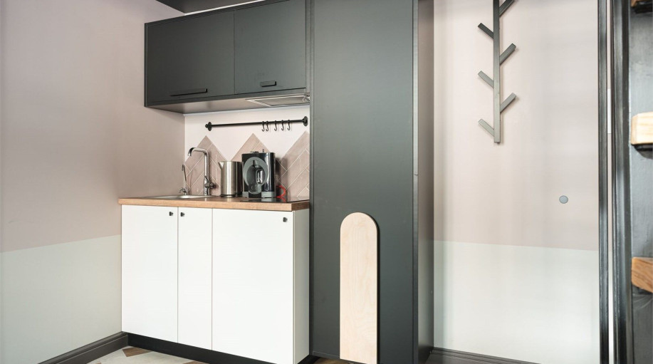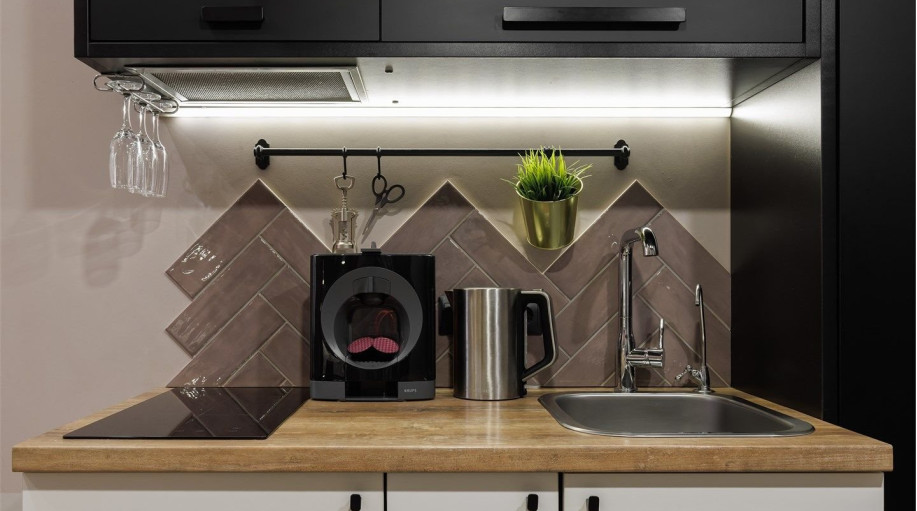 ✔ оснащенная всем необходимым мини-кухня (холодильник, плита, чайник, тостер, кофе-машина, микроволновая печь, посуда),