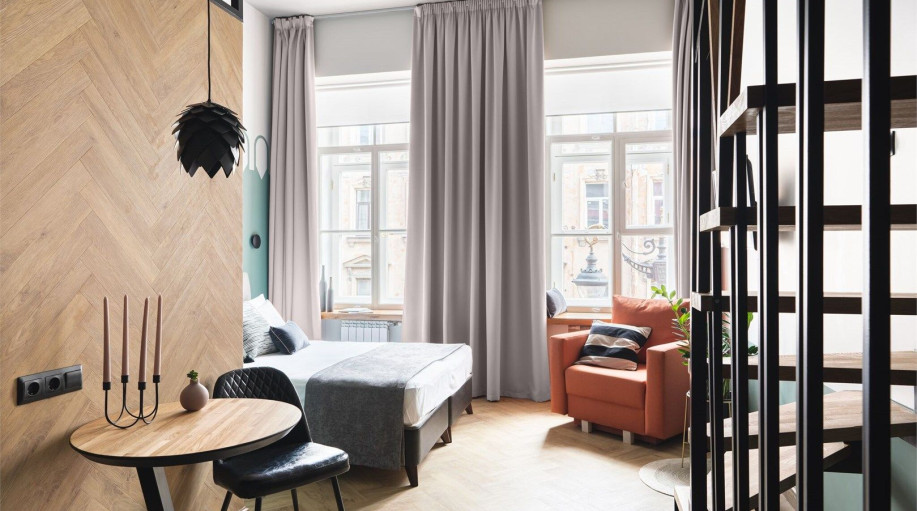Стильный и уютный номер с видом на улицу Рубинштейна.