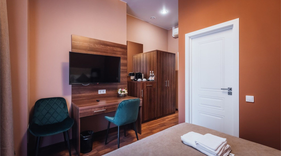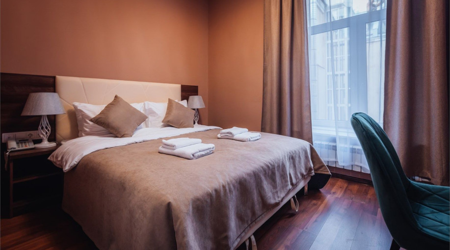 Уютный номер Смарт прекрасно подходит для деловых поездок. Окна номера выходят во внутренний двор здания - архитектурная особенность Санкт-Петербурга. Средняя площадь номера – 16-17 кв. м., вид – в тихий внутренний дворик отеля, вместимость - 1-2 человека. Каждый номер оснащен: двуспальной кроватью ..