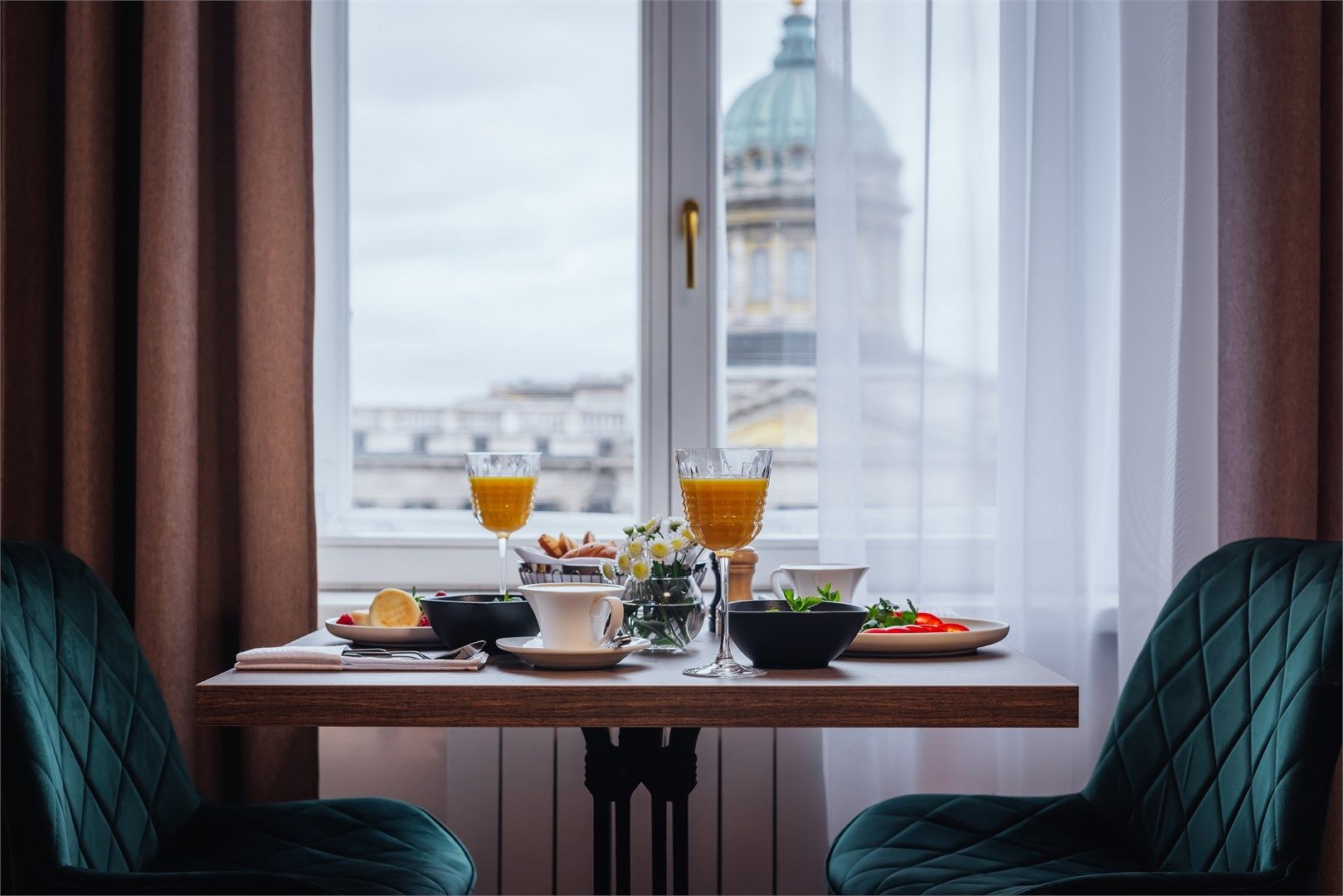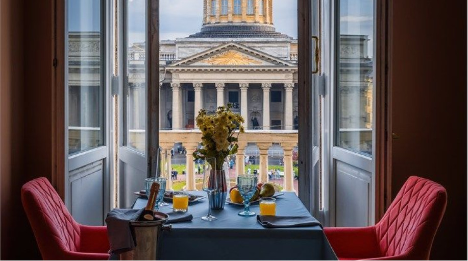 Отель расположен в уникальном месте - на углу Невского проспекта и Малой Конюшенной улицы с потрясающим видом на Казанский собор.