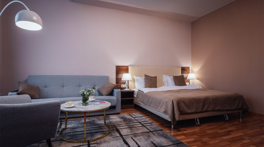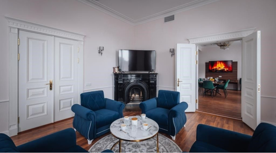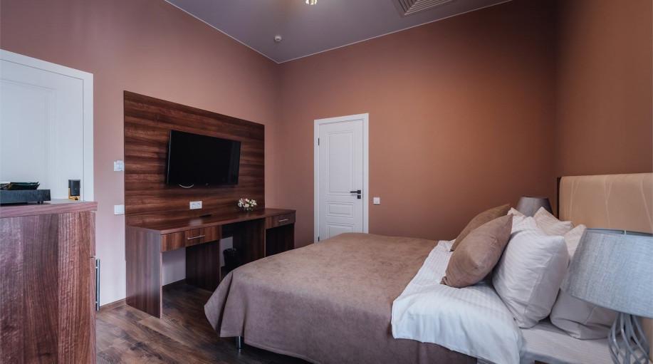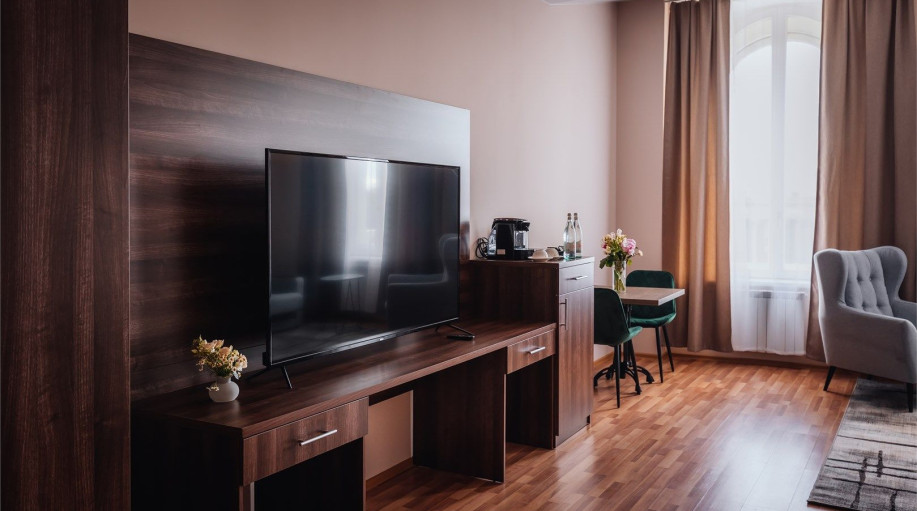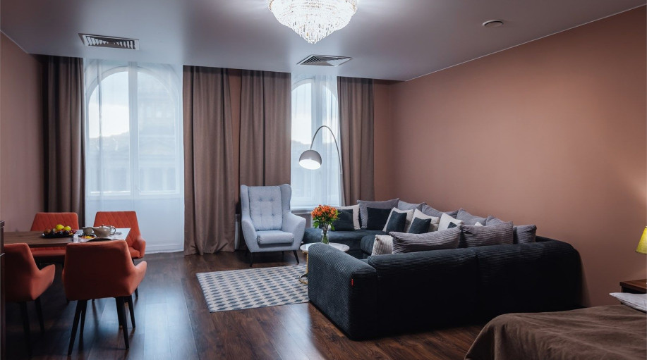 Комфортабельный трехкомнатный номер площадью 70 кв. м подойдет для размещения 6-9 гостей с детьми. Есть возможность организации смежных номеров для комфортного размещения семьи. Из панорамных окон номера открывается вид на пешеходную зону исторической улицы Малая Конюшенная. В номере: 3 изолированны..