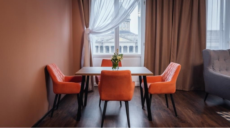 Самый роскошный номер в отеле - Президентский Люкс площадью 170м². Покоряет сердца неповторимым видом на архитектурный ансамбль Казанского собора и Невский проспект. Такого потрясающего, головокружительного вида на Казанский собор нет более ни в одном отеле города! В люксе отлично сочетаются классич..