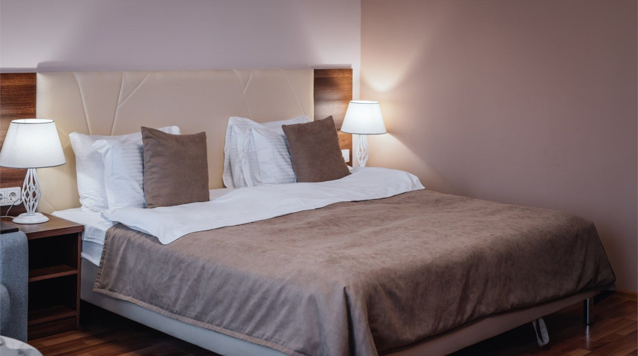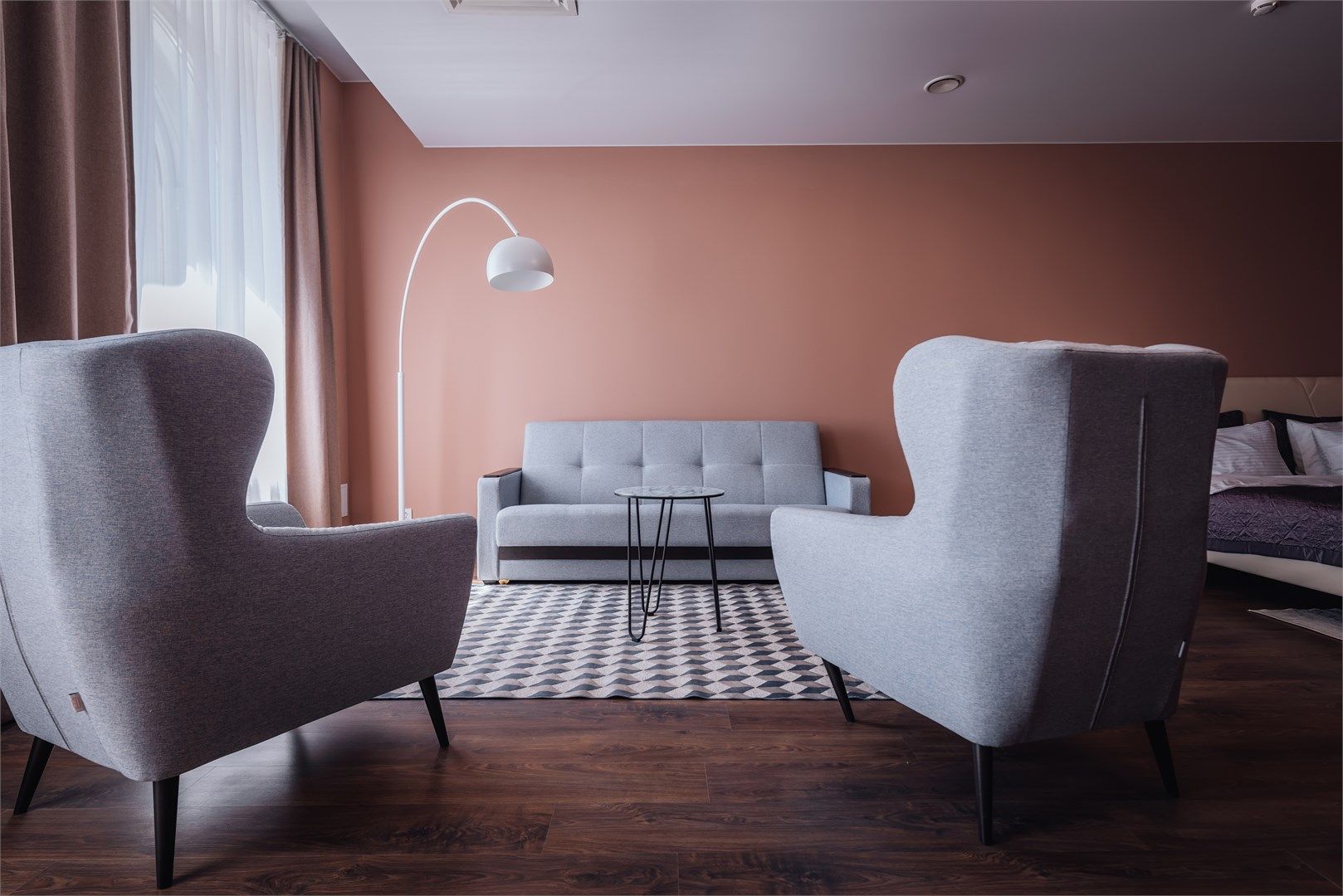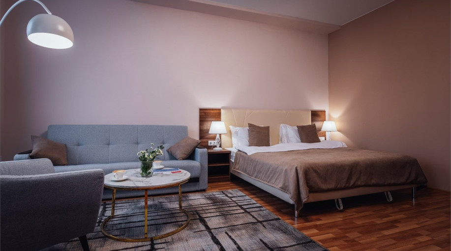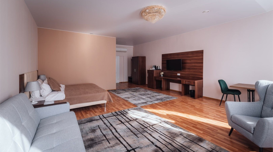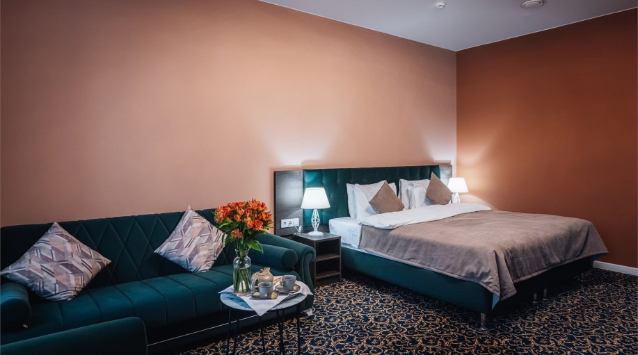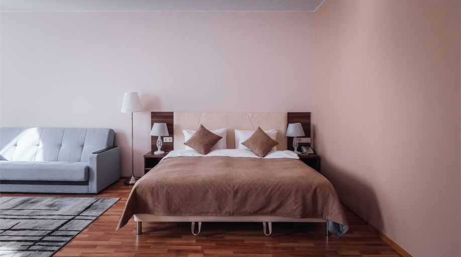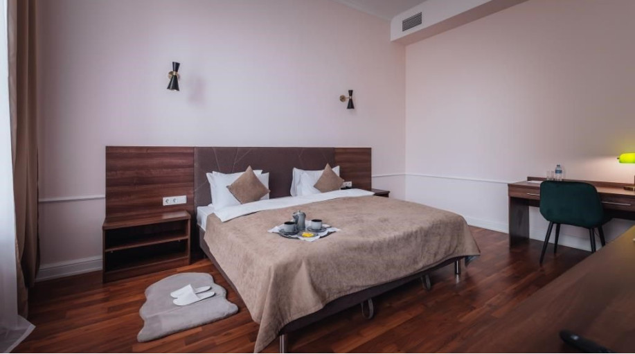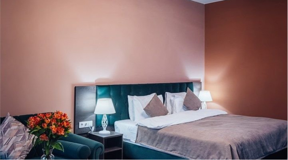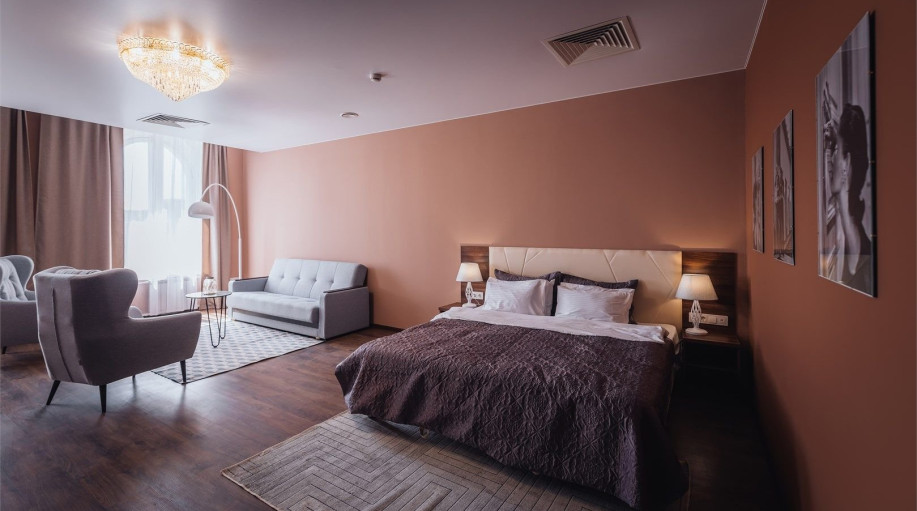 Классический интерьер и нежные оттенки, используемые в декорировании номеров категории Люкс от..