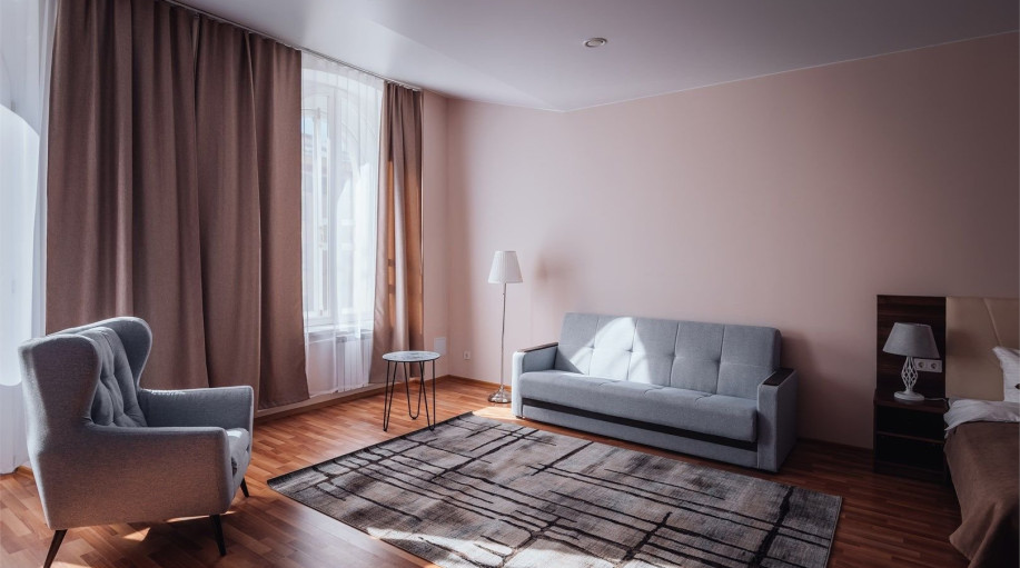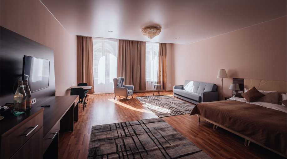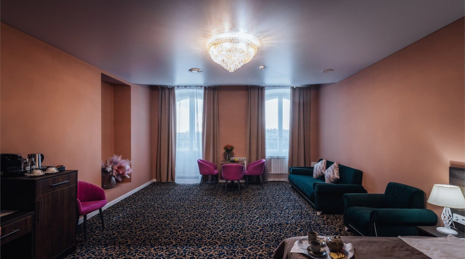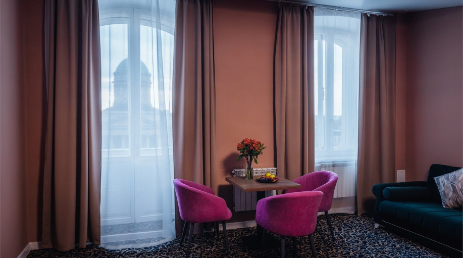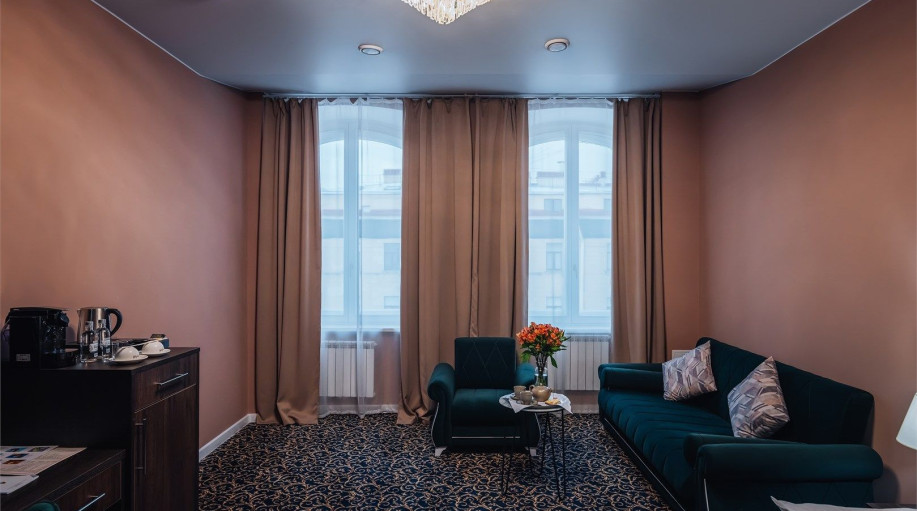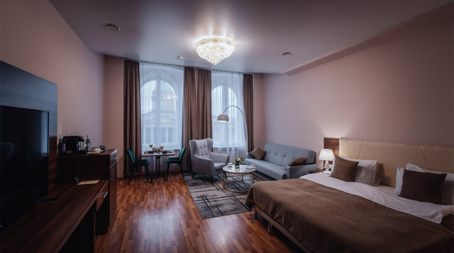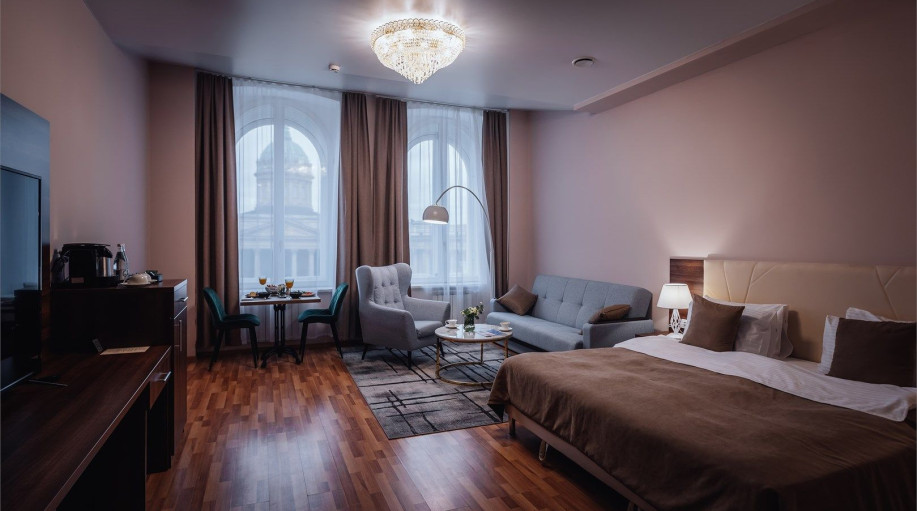 Просторные и светлые номера Люкс сочетают в себе изысканный интерьер и новейшие современные технологии, а великолепный фронтальный вид на Казанский собор и панорамные окна сделают Ваш отдых незабываемым!