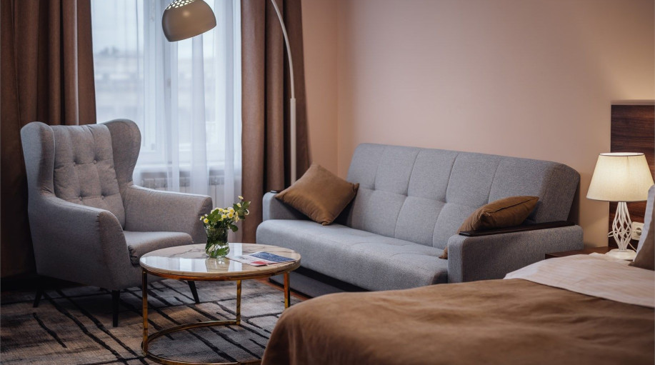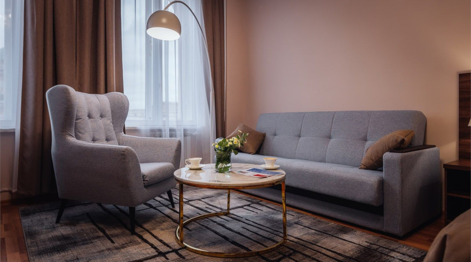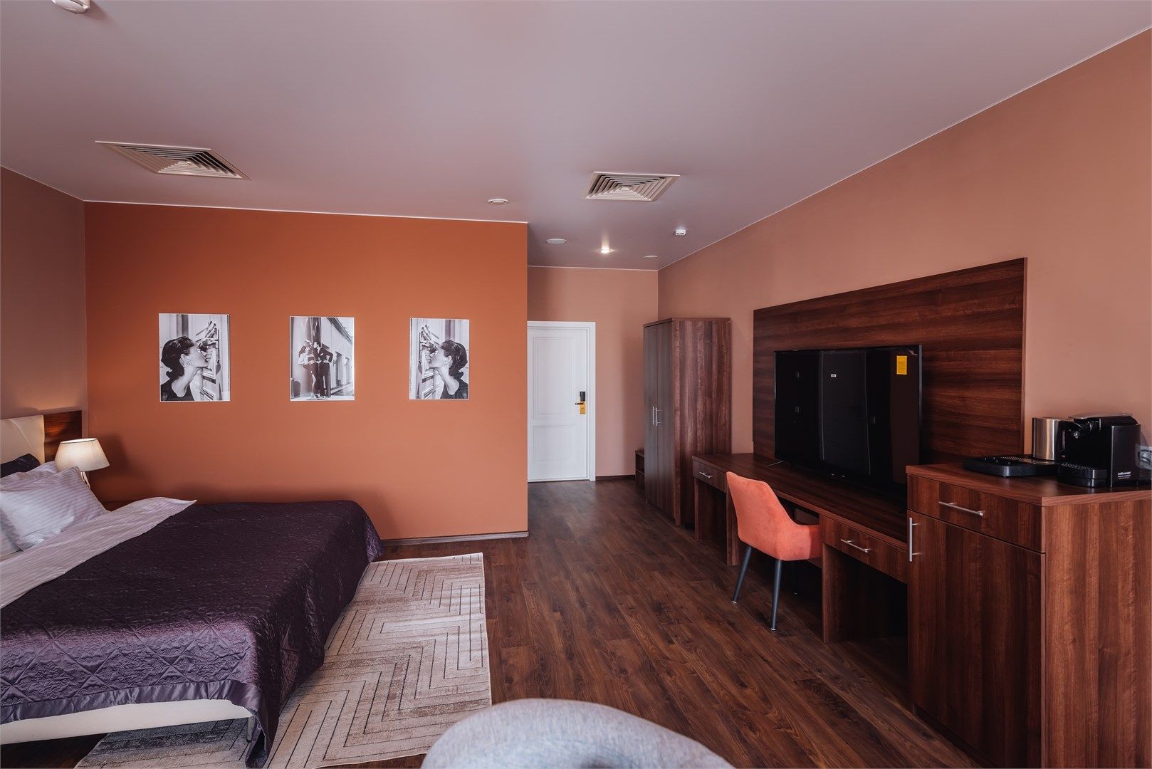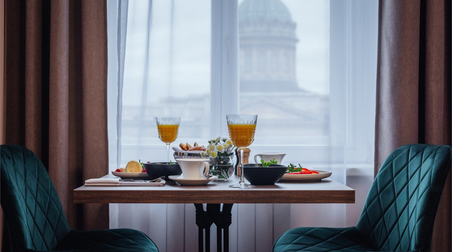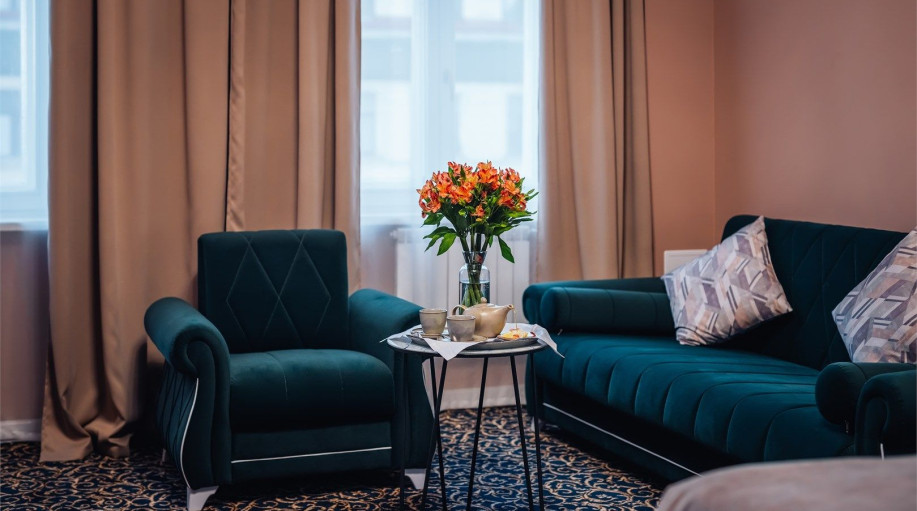 Просторные и светлые номера Люкс сочетают в себе изысканный интерьер и новейшие современные технологии, а великолепный фронтальный вид на Казанский собор и панорамные окна сделают Ваш отдых незабываемым!