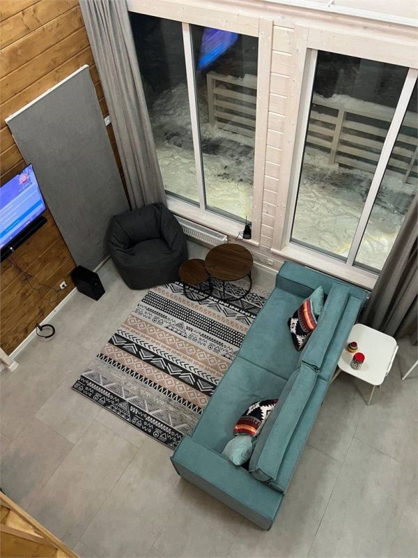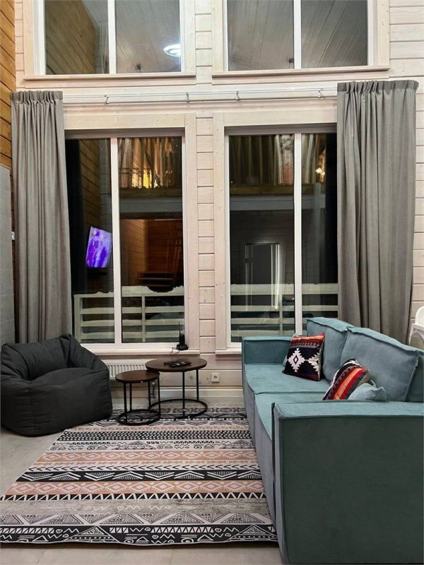 ✔ Зоны отдыха на первом и втором этаже с уютным диваном, ТВ и большим обеденным столом.