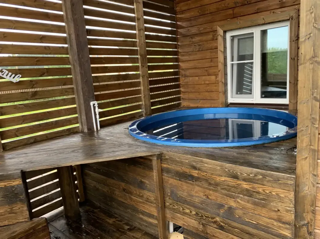 Тёплая сауна с нефритовыми камнями включена в стоимость. Индивидуальный комфорт на персональной закрытой территории. Купель на террасе. Вашим питомцам понравится на огороженной территории.