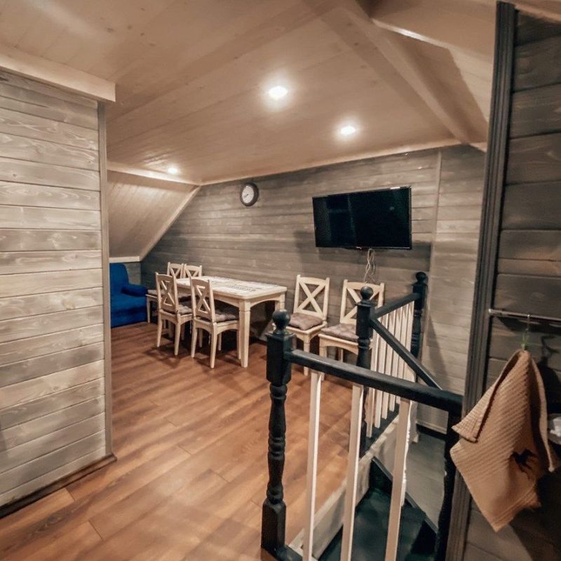 Идеальный формат отдыха для небольших компаний, желающих арендовать объект с собственной кухней и местом для посиделок. В доме три спальни, гостевая зона и оборудованная кухня. Особым преимуществом является своя просторная терраса с шикарным видом на базу и реку Оредеж.