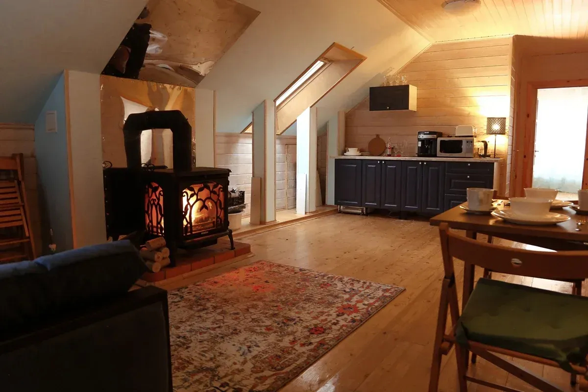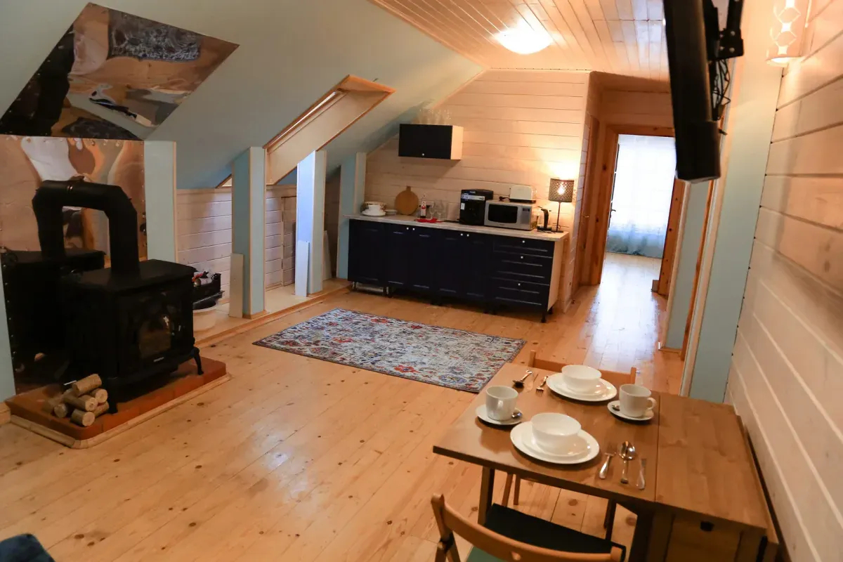 ✔ На каждом этаже есть свой кухонный уголок, обеденный стол и даже камин!