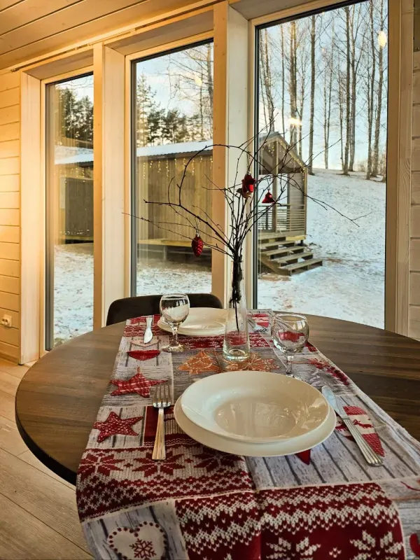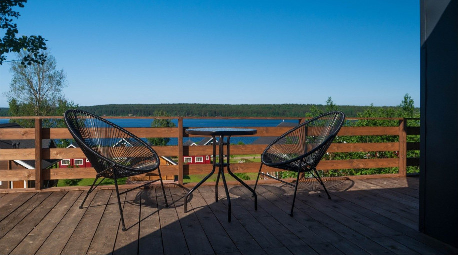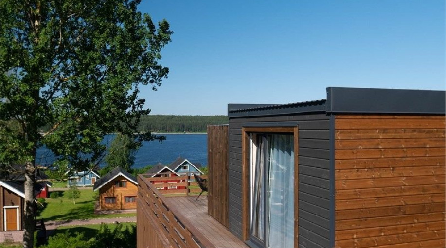 ✔ Коттеджи расположены на возвышении, за счет чего из панорамных окон и с террасы открывается изумительный вид на Суходольское озеро и лес на другом берегу.