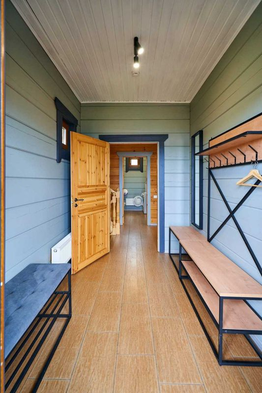 ✔ На цокольном этаже коттеджа расположена сауна с электрической печью, две душевые, комната для отдыха и раздевалка.