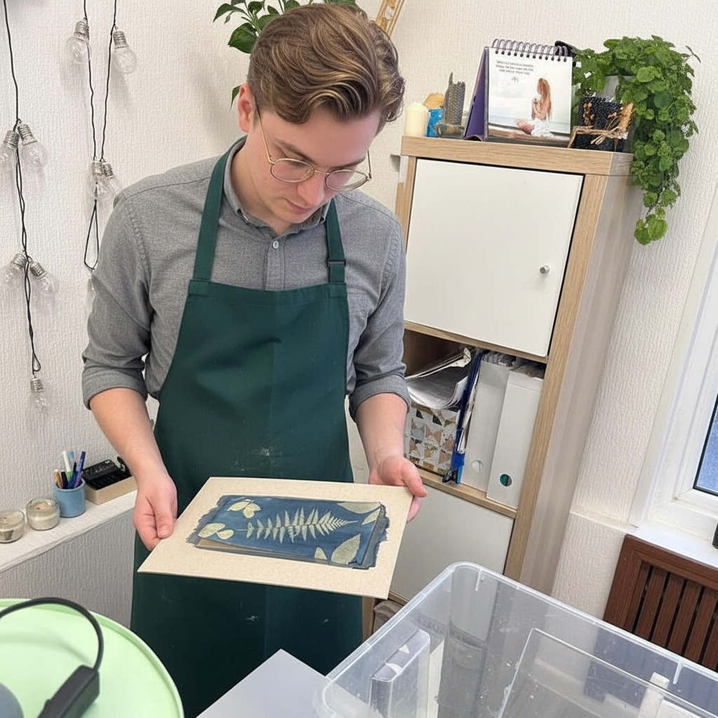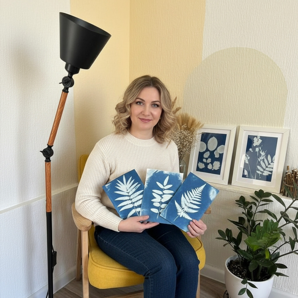 Погрузитесь в завораживающий мир цианотипии — старинной техники XIX века, где искусство встречается с наукой. Под воздействием солнечного света обычная бумага и ткань рождают уникальные изображения в оттенках благородной «берлинской лазури».