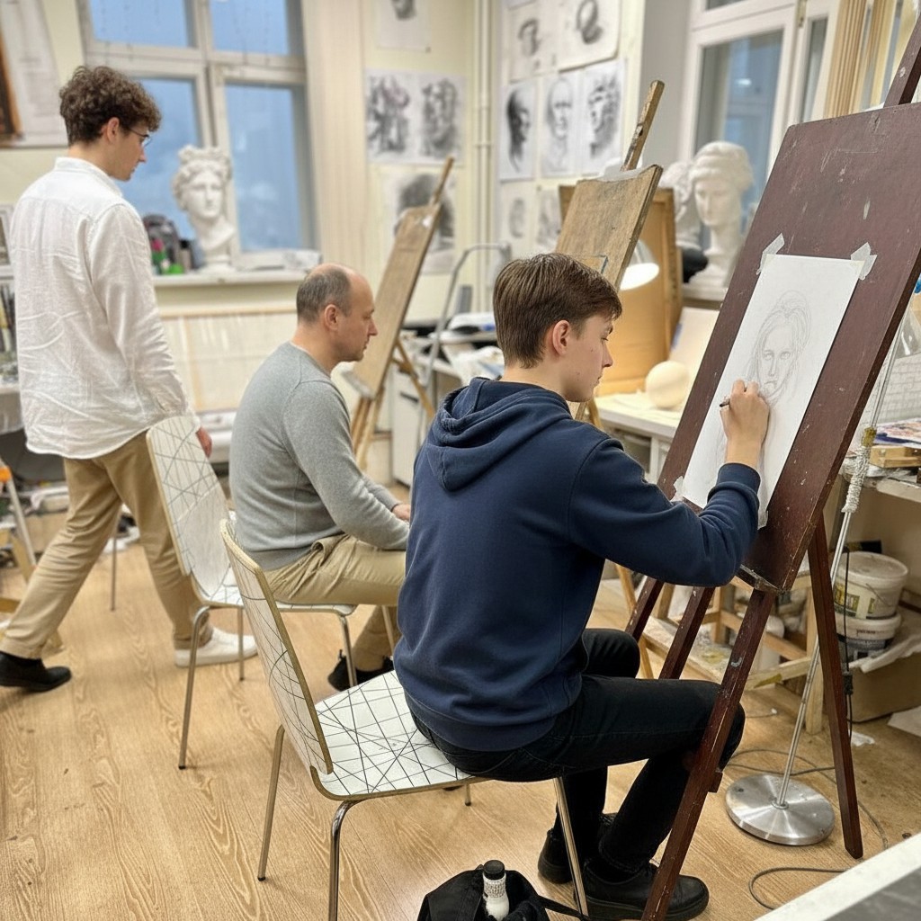 - Все преподаватели — профессиональные художники с высшим образованием (Строгановка, МАРХИ и др.).