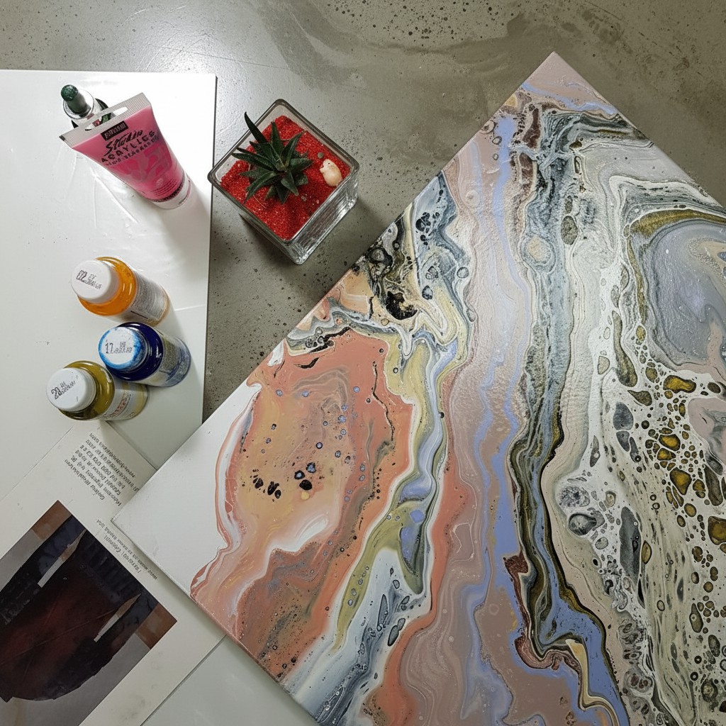 Создайте абстрактную интерьерную картину с эффектными переливами красок. -