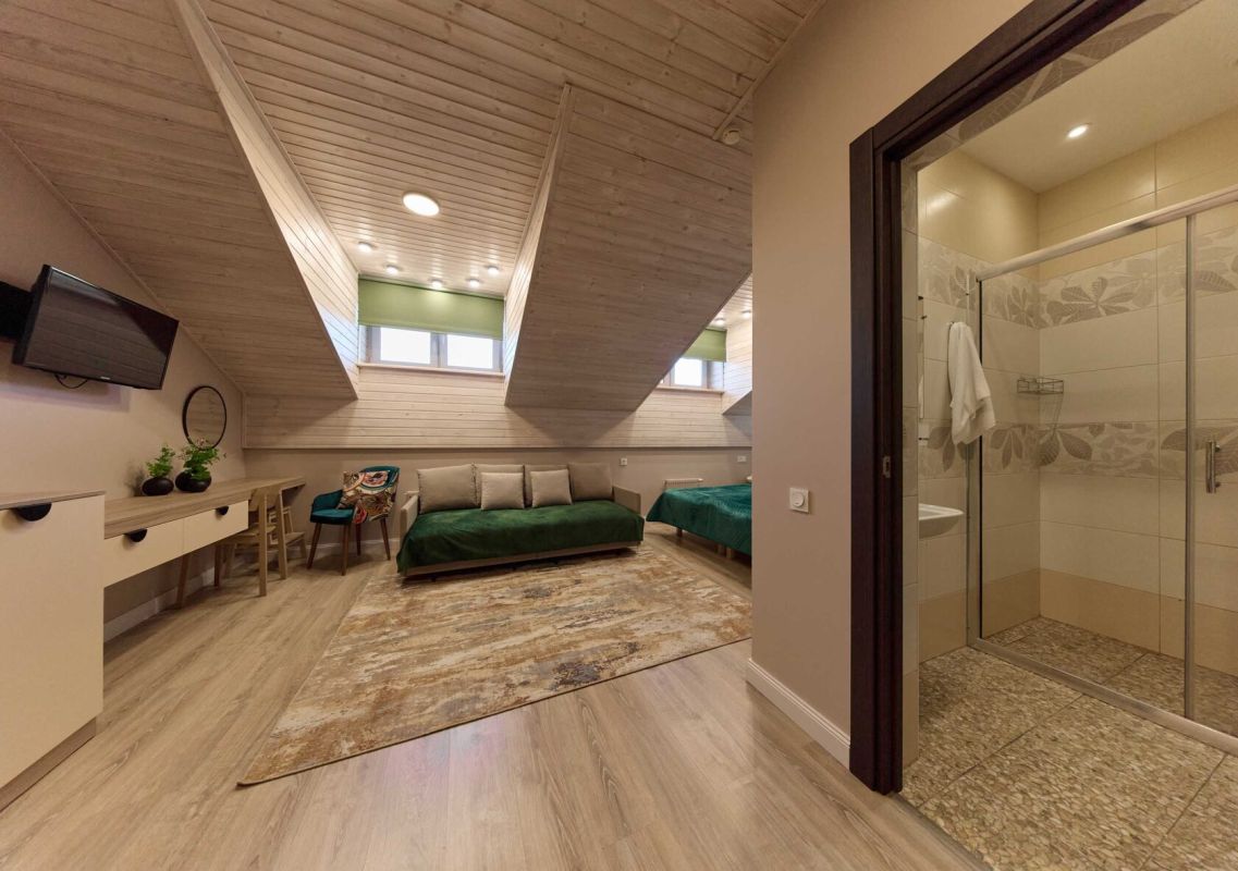 Очаровательные мансардные окна - изюминка наших номеров.