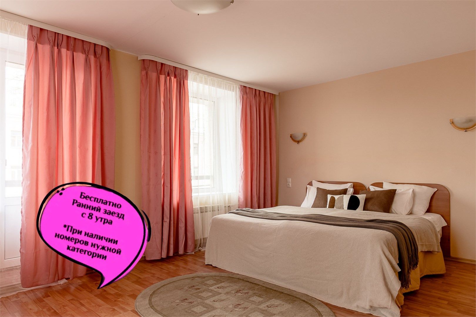 Номера оформлены в спокойной палитре и оснащены всем необходимым для отдыха и работы. Удобные кровати, собственные ванные комнаты и п..