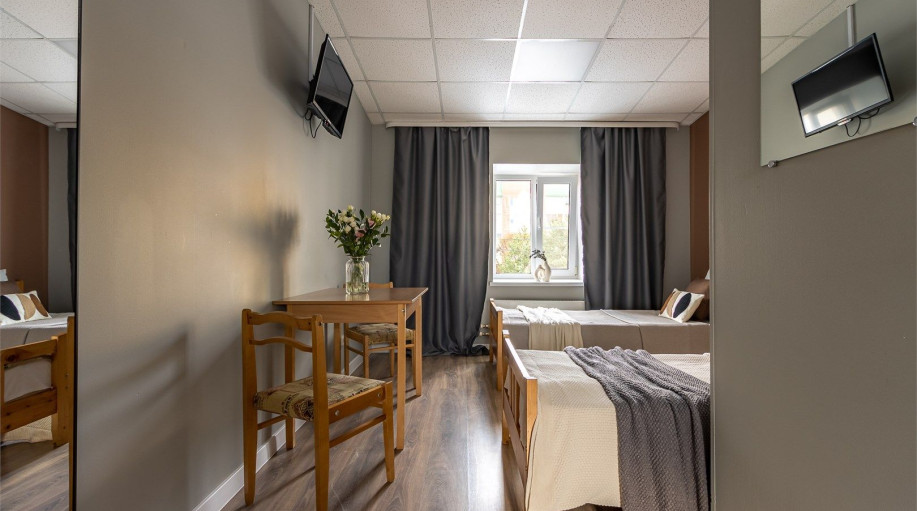 Наши номера — это продуманный до мелочей уют: свет в меру, комфорт, простые, но функциональные решения. Забронировать проживание и почувствовать Гатчину такой, какой её видят местные — спокойной, гостеприимной и настоящей, — легко и приятно.