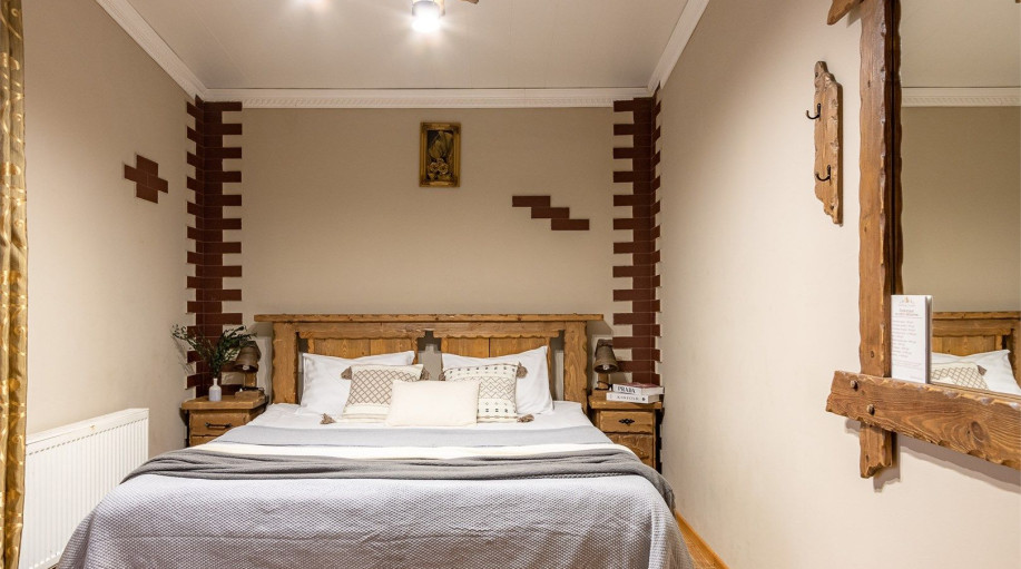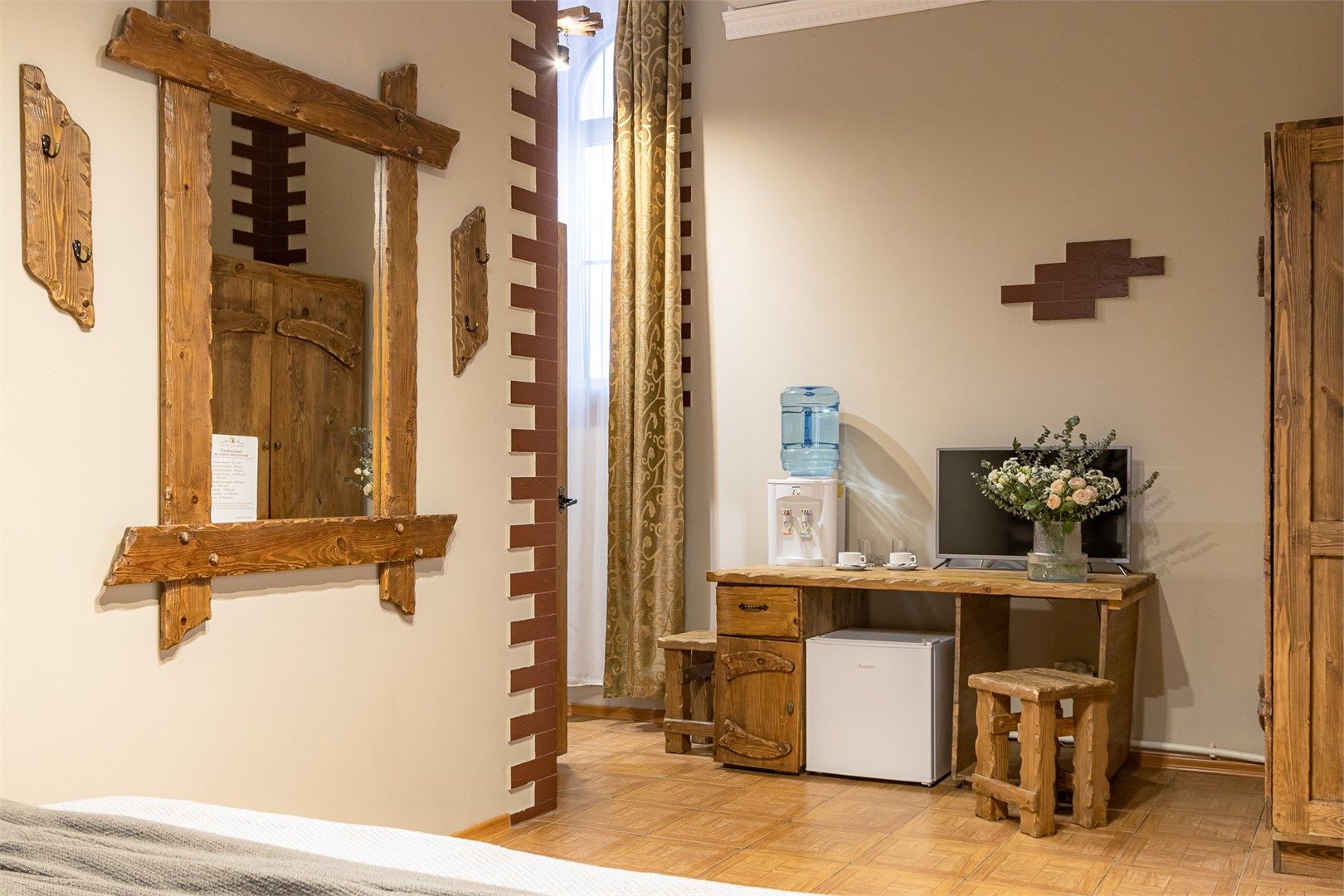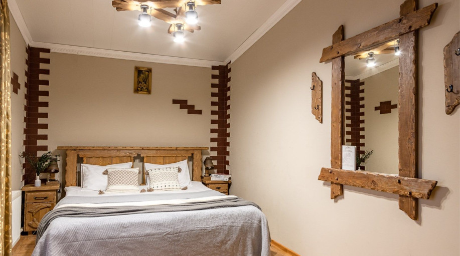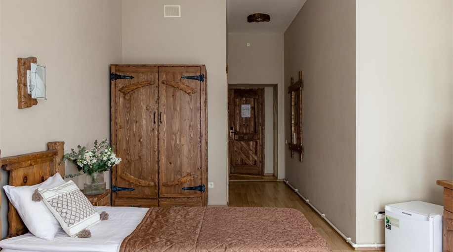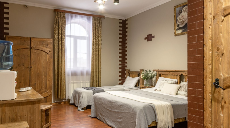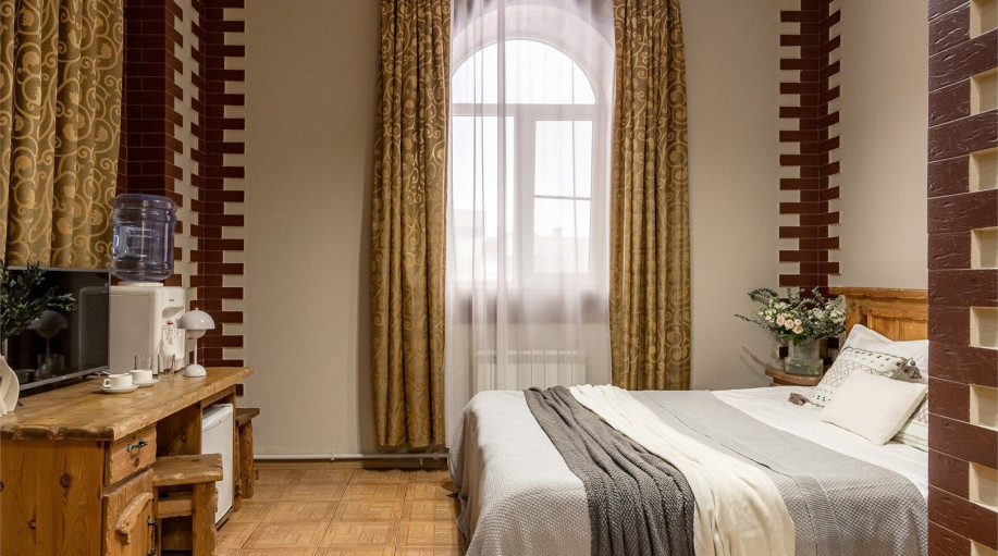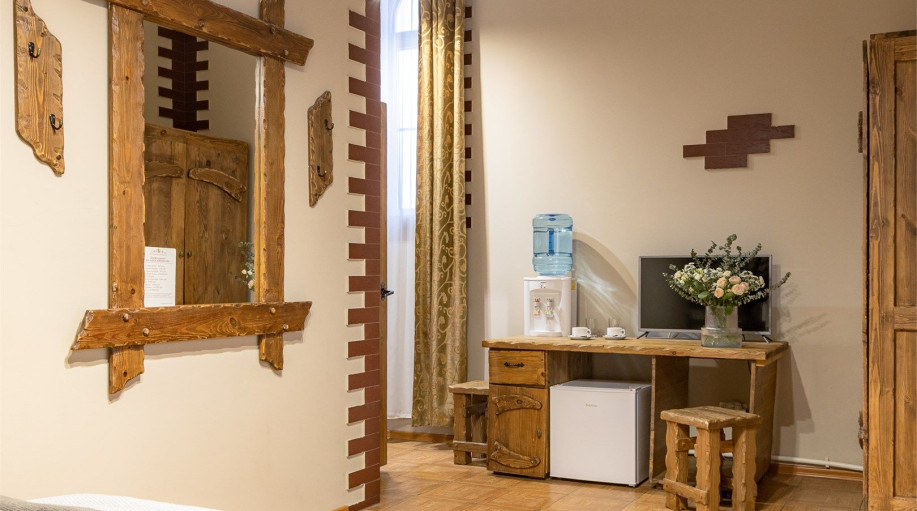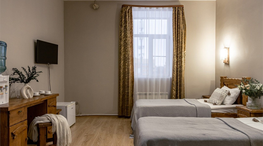 Уютный однокомнатный номер располагает всем необходимым для комфортного отдыха. В номере установлены шкаф для одежды, сейф, телевизор, холодильник, кулер с питьевой водой, чайный набор, бесплатный Wi-fi. Ванная комната оснащена душевой кабиной, феном, комплектом полотенец и набором гигиенических при..