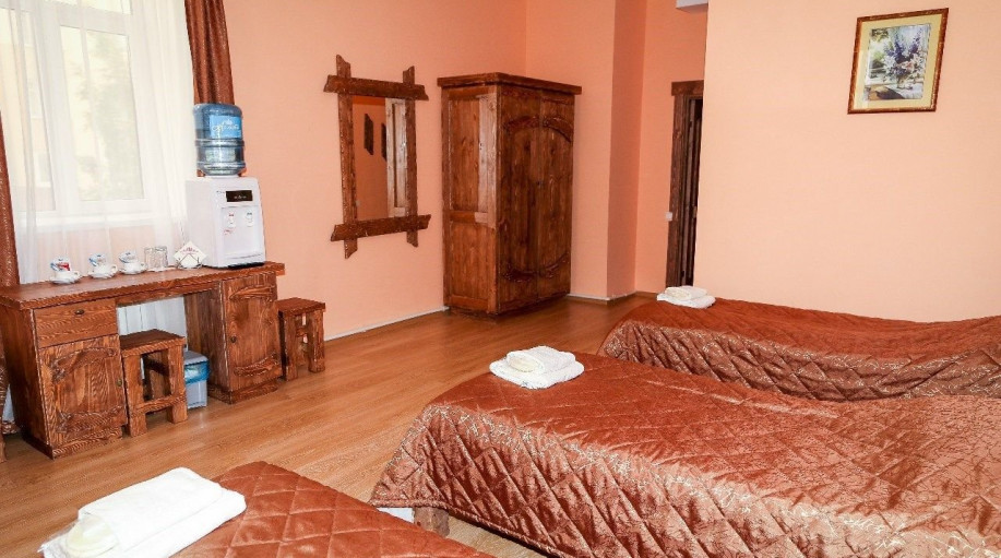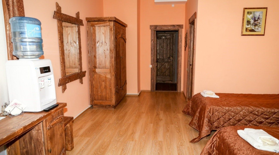 Уютный однокомнатный номер располагает всем необходимым для комфортного отдыха. В номере установлены шкаф для одежды, телевизор, тапочки, холодильник, кулер с питьевой водой, бесплатный Wi-fi. Ванная комната оснащена душевой кабиной, феном, комплектом полотенец и набором гигиенических принадлежносте..