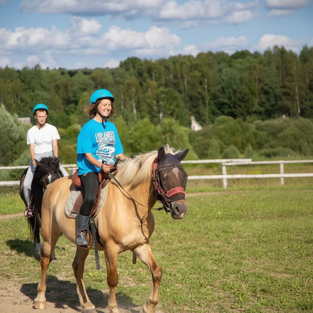 - Катание: Индивидуальная прогулка верхой на открытом плацу в течение 60 минут.