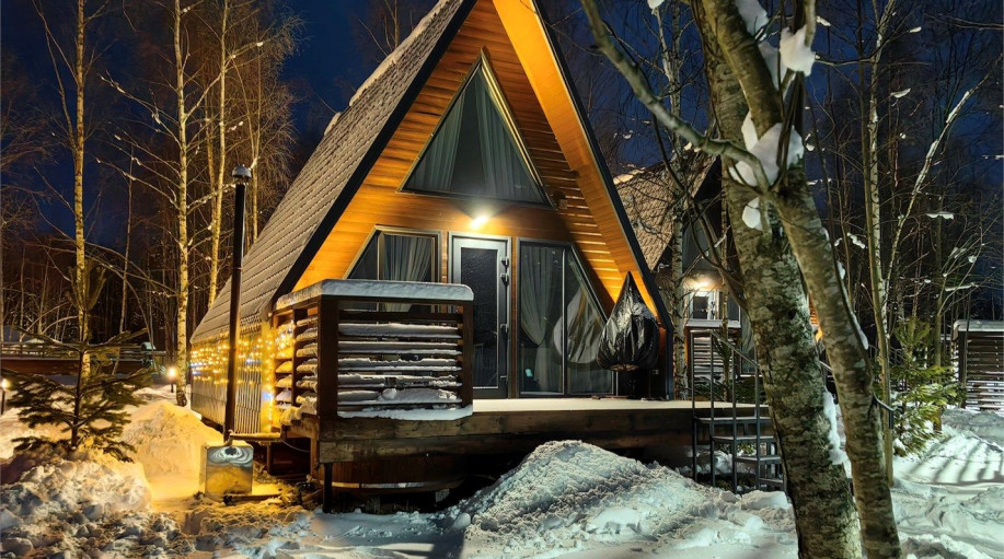 Дизайнерский дом A-frame в глэмпинге На краю света