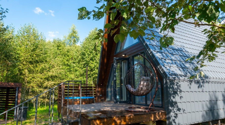 Атмосферный треугольный дом с чаном среди деревьев. Уют, тишина и природа - всё для отдыха вдали от города. Идеально для семейных пар или дружеских компаний.