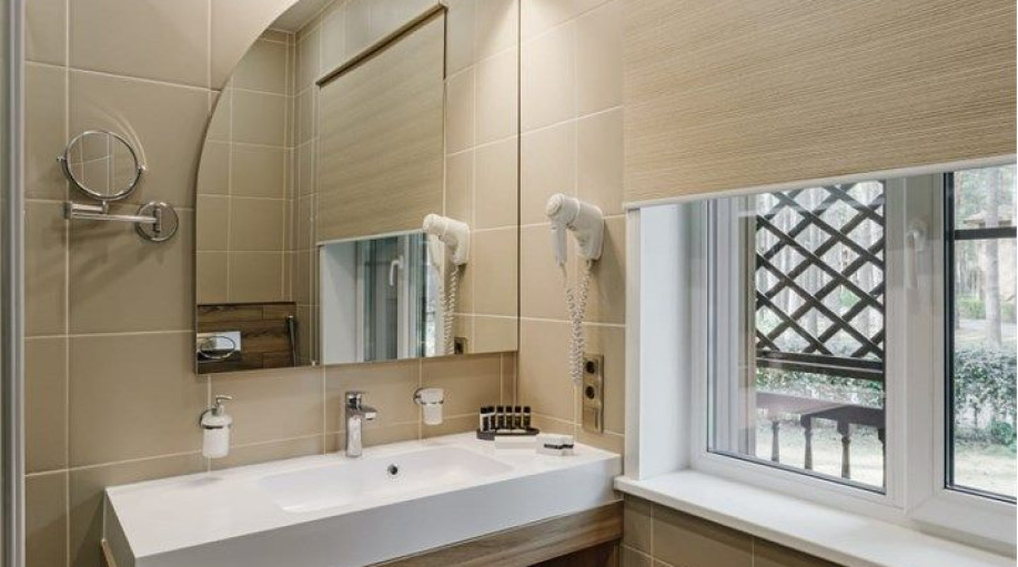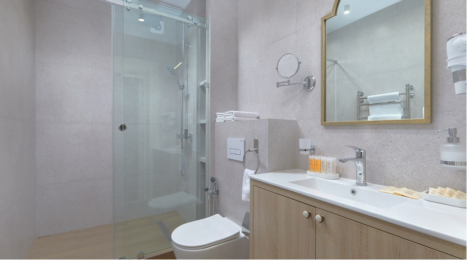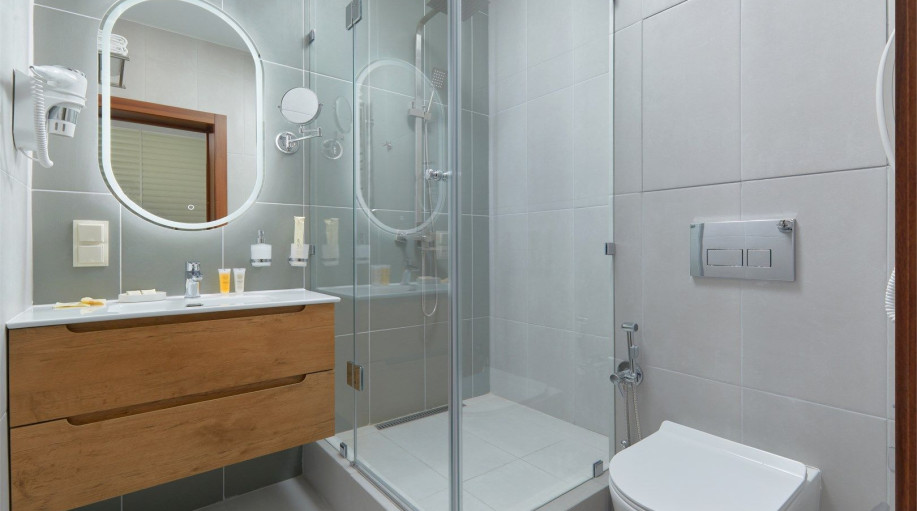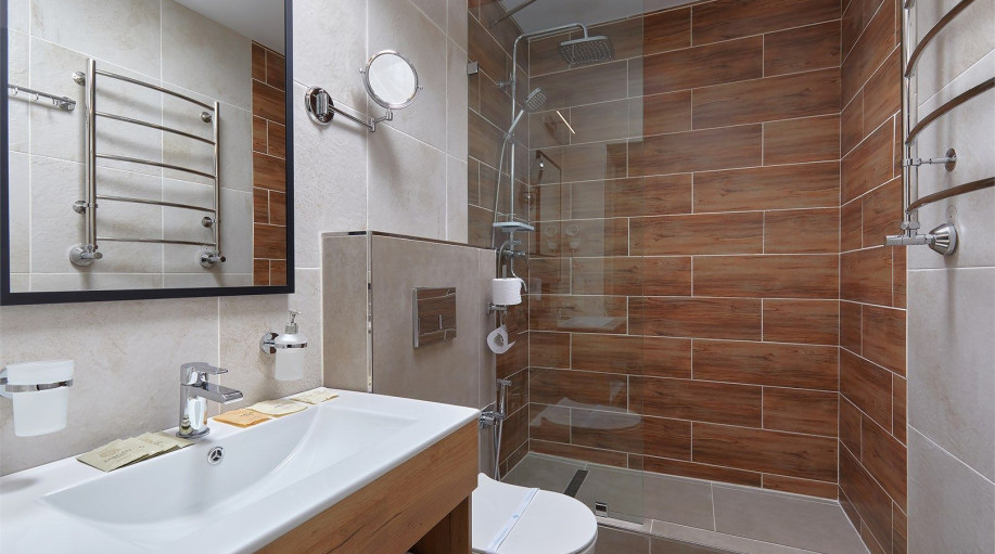 Ванная комната каждого номера оборудована современными душевыми кабинами и феном. В каждый номер предоставляется 2 полотенца и подстилка для ног, замена которых происходит ежедневно, а также гель для душа и жидкое мыло. Размещение с животными в номерах данной категории запрещено. В отеле предусмотрены два корпуса для проживания с собаками, по наличию номеров необходимо уточнять у менеджеров отеля.