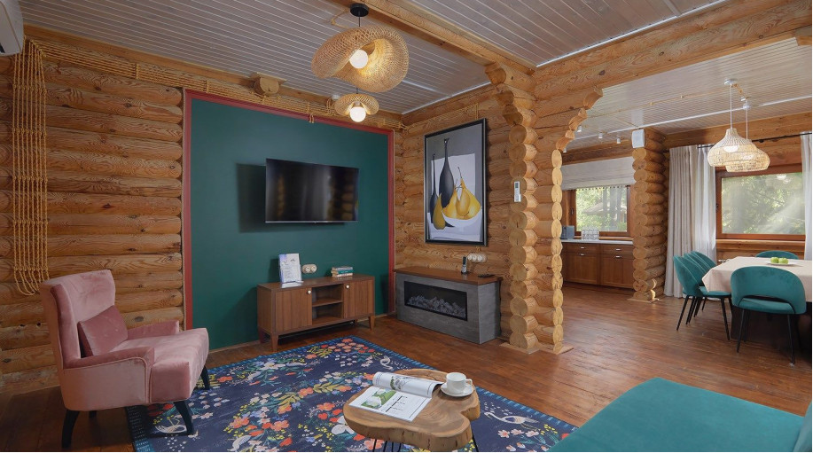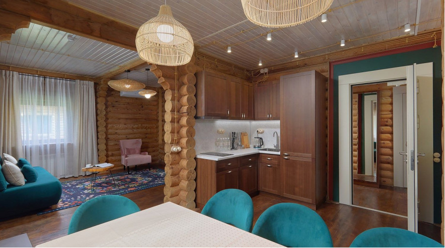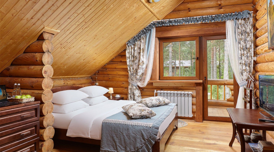 Для тех, кто предпочитает уединенный или семейный отдых, а также для компаний в Эко-отеле «ВеЛес» можем предложить для проживания уютные двухэтажные коттеджи. Всего на территории отеля 3 таких домика, которые оборудованы всем необходимым для полноценного и комфортного отдыха. Интерьер этих коттеджей стилизован под деревенскую избу.