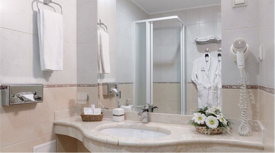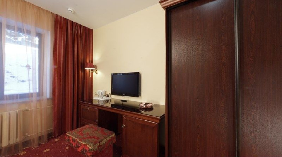 В номере: санузел, фен, холодильник, мини бар, телевизор, междугородняя и международная связь, интернет Wi-Fi (чай, кофе, сахар, чайник), халат, тапочки, система климат-контроля.