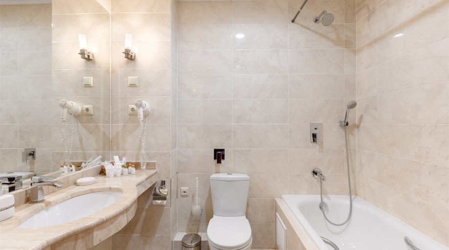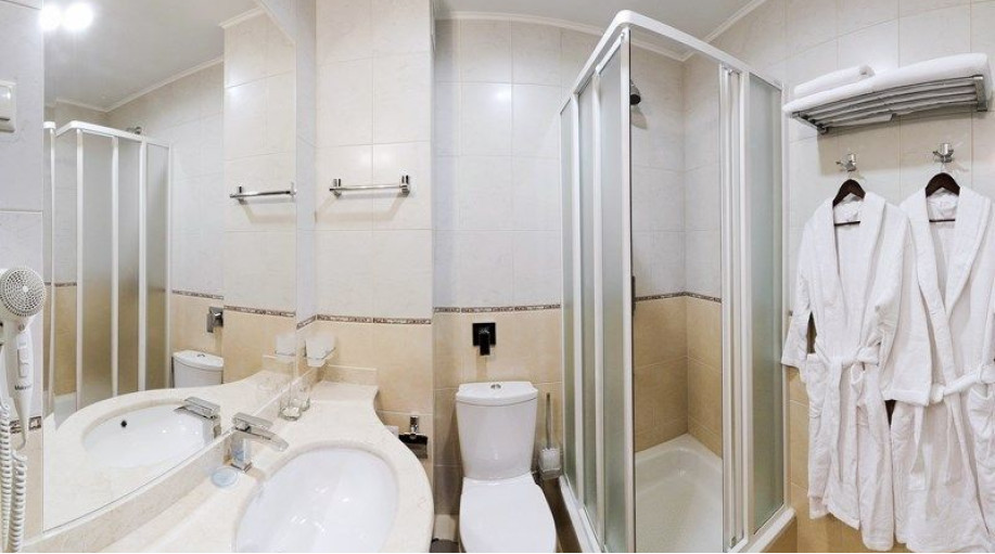 Так же в ванной комнате есть необходимые принадлежности: шампунь, гель для душа, шапочка для душа, банное, ножное и лицевое полотенца.