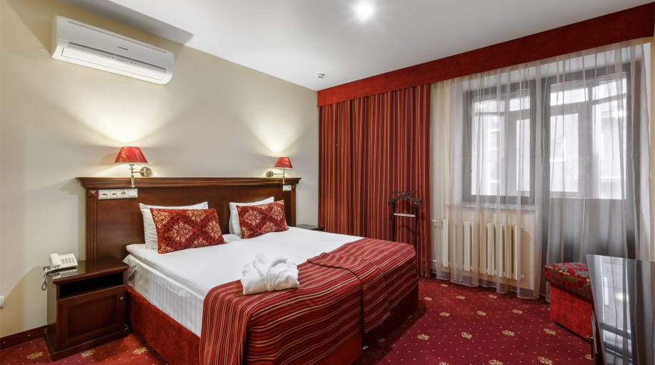 Номер, выполненный в классическом стиле, оборудован двуспальной кроватью (или двумя односпальными), удобным рабочим столом, плазменным телевизором с кабельным телевидением и бесплатным Wi-Fi.